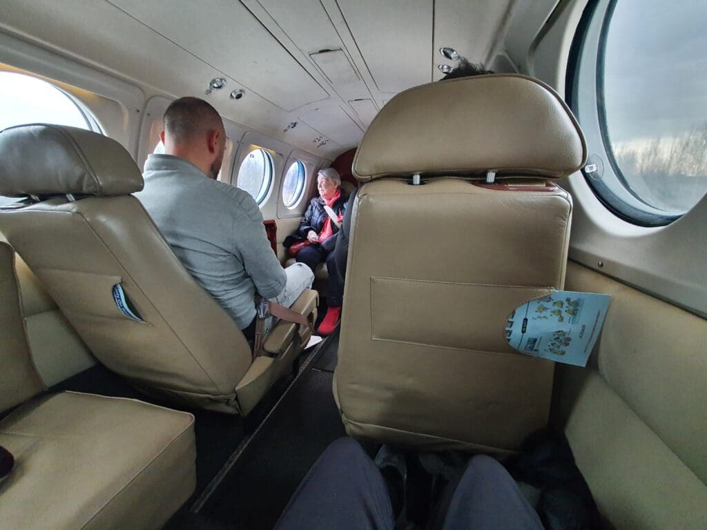 Whilst more modern King Airs often come complete with entertainment screens, as well as amenities such as plug sockets and USB chargers, unsurprisingly none of these could be found on this ageing turboprop. Fortunately, perhaps unlike a more ‘normal’ passenger, I was content with simply passing the time by simply soaking up the atmosphere of the aircraft and occasionally turning around and peering into the cockpit up ahead. There, a glance at the instruments revealed that the aircraft was cruising at an altitude of 20,000 feet and travelling at a speed of 200 knots. Meanwhile, the other passengers spent the journey sleeping, chatting with their fellow passengers and entertaining themselves on their own devices. Meanwhile, returning to noise and vibration levels, once in the cruise I found both of these to be fairly minimal with those chatting away onboard seeming to have no difficulty in sustaining a conversation.