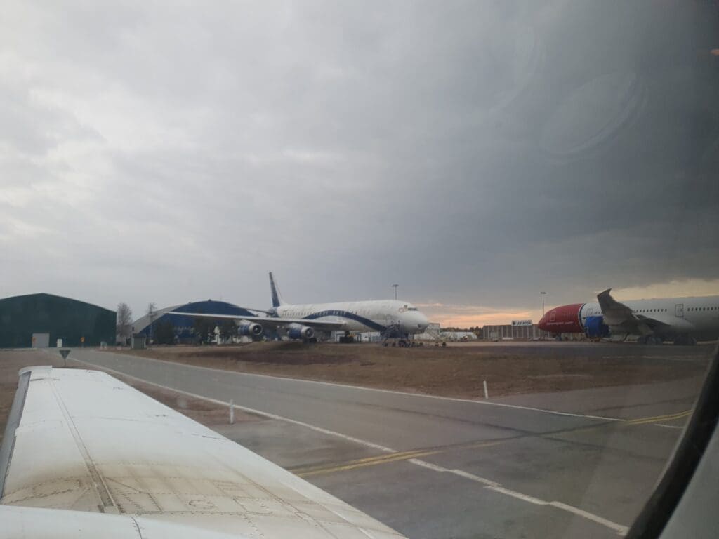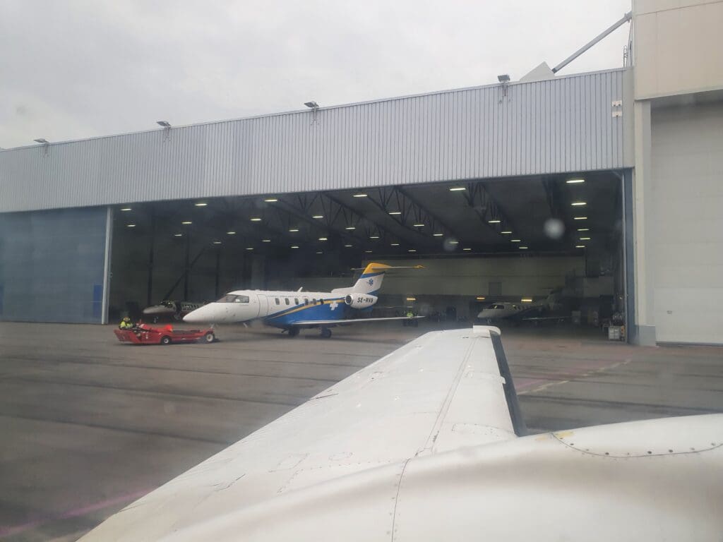 Once the two pilots were in position in the cockpit, they could be heard running through various checklists and a short time later the King Air’s two turboprop engines began to whine as they fired up into life. As with most King Airs, this particular aircraft is fitted with two Pratt and Whitney PT6 turboprop engines – a popular model utilised by a vast plethora of different aircraft types from military trainers and UAVs to STOL-capable airliners such as the Cessna Caravan and Twin Otter. Given the small size of the cabin and my position right next to the engine, I had expected the two engines to produce a decent racket and a fair amount of vibration. However, perhaps the result of the King Air’s cabin soundproofing, the engines seemed to be much quieter than I had expected. A couple of minutes after the two turboprop engines had spooled up, the King Air jolted forward and commenced its taxi as the Grafair agent waved us off at the start of our journey to Sveg. From the stand, the aircraft cautiously made its way past the aforementioned Danish Falcon, meanwhile, a host of jets could be seen inside one of the two hangars. These came in the form of a Gulfstream G550 operated by local company European Flight Service, an air ambulance configured Grafair Cessna Citation 560 Ultra and two brand new Svenskt Ambulansflyg Pilatus PC-24s which are dedicated to transporting medical patients to and from Sweden’s remote regions – one of which could be seen being readied for a morning mission to Mora. Other than this, a stored Boeing 787-9 Dreamliner that once operated for Norwegian and a long-retired vintage Douglas DC-8 could also be seen.