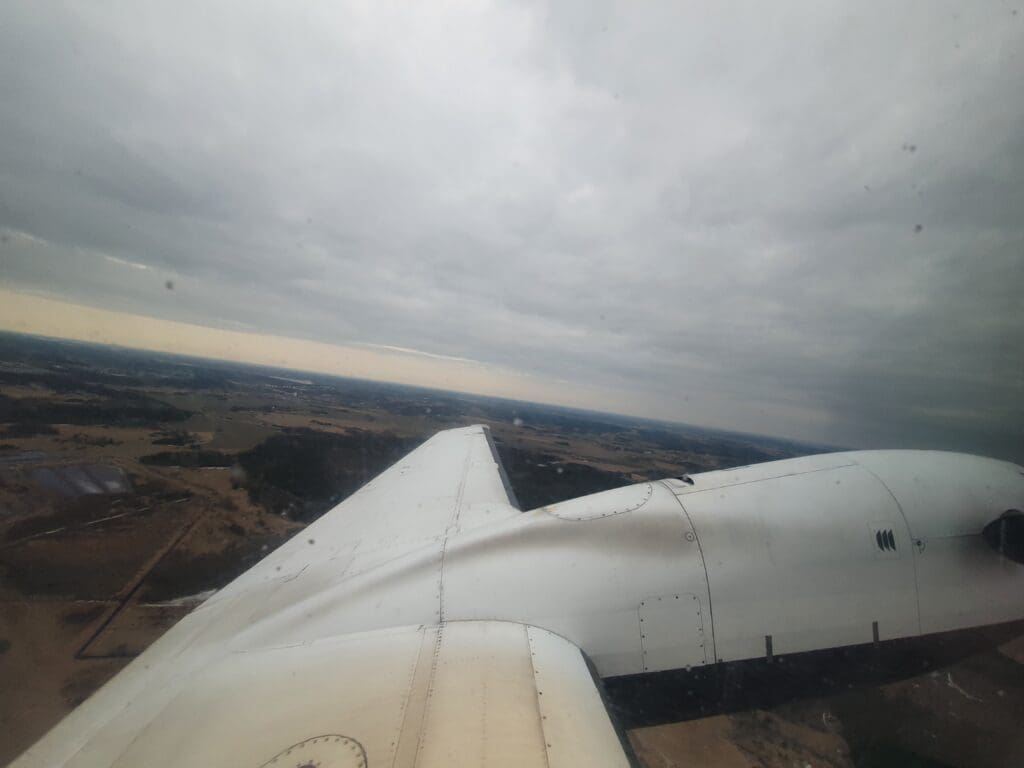 As the King Air rocketed away from Arlanda Airport, things got slightly bumpy although this turbulence did not last for long. During the first few minutes of the flight, the aircraft climbed over a mixture of fields and forests, with the nearby Uppsala town of Knivsta visible to the east as we made our way towards the clouds. A short time after taking off, the aircraft banked slightly before rolling out onto a northwesterly heading that would take us up to Sveg with only minimal further changes to our course. A total of four minutes after leaving Arlanda Airport behind, the King Air rose into the clouds and passed through these quickly ensuring that nothing more of the county of Uppsala could be seen. Meanwhile, after passing the city of Uppsala, the King Air levelled off at which point the seatbelt sign was extinguished around eighteen minutes into the flight. Nevertheless, with no galley provided and a passenger occupying the emergency toilet seat at the rear of the cabin, there was nowhere for passengers to go and thus all remained firmly in their seats for the duration of the flight.
