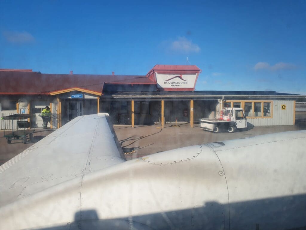 Aware that this was to be my last King Air flight for quite some time, whilst I should have savoured my last few minutes onboard, by this stage, I simply wanted to safely return to Terrafirma. I was thus delighted when the vacuum cleaner sound could be heard once more and the flaps and gear fell into position for our arrival into Sveg. Turning around, I caught a glimpse of the airport’s runway up ahead whilst the Captain could be seen fighting with the yoke and power levers as they guided the King Air down towards this. As we descended, the King Air whizzed past the tops of the tall pine trees that sit around the airport and soon passed over the perimeter fence. Just metres above the runway, the throttles were pushed forward at which point I was a little worried as it appeared that a go-around had been initiated although thankfully this was not the case and a few moments later the King Air made a surprisingly gentle touchdown on Sveg Airport’s Runway 27 after a total of 1H09 in the air.
