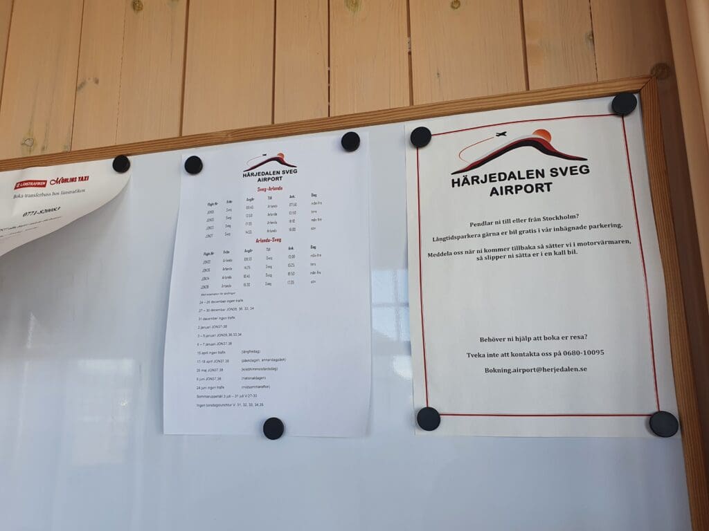 Once the cabin door had been opened, my fellow passengers wasted no time in making their way out of the aircraft. After finding the remnants of my broken glasses from under the seat, I stood up and made my way down the cabin. As I cautiously made my way down the built-in steps and was welcomed to Sveg by one of the ground crew, I was almost blown over by the very gusty wind before I walked the short distance to the small terminal. Upon entering the terminal, I found this to be pleasant and modern, clean and tidy, featuring lots of local wood in its design giving it both a homely and unique feel. Other than the usual amenities such as plug sockets, toilets and complimentary wifi, a free hot drinks machine is offered and so after picking up my bag, I decided to grab a cappuccino before beginning my journey to the bright lights of the metropolis that is Sveg.