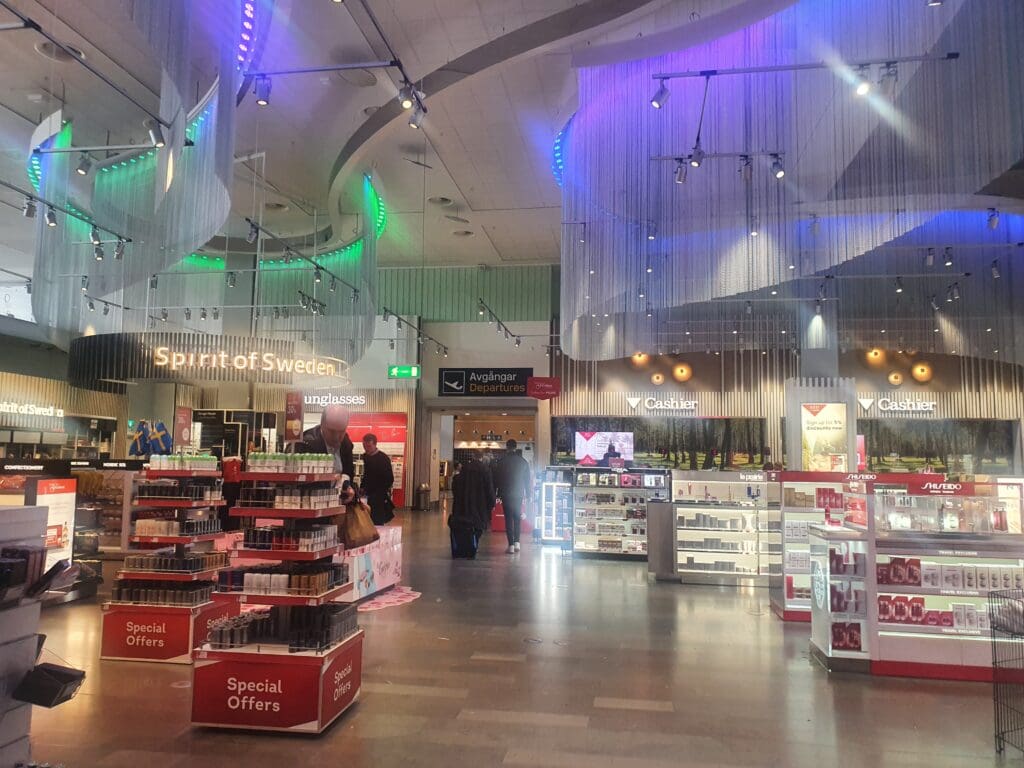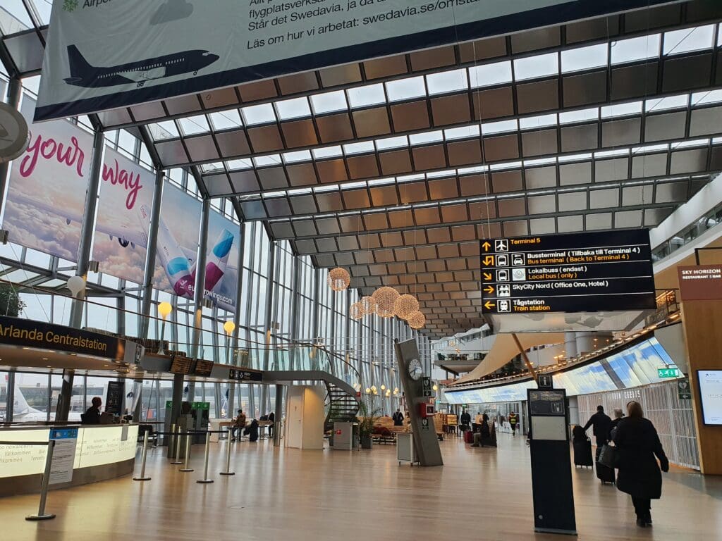 Following a pleasant stay in Sky City, at 0750 I decided to wander back through the terminal and over to Terminal 5’s check-in hall which appeared to be no less busy than it had been when I walked through it earlier that morning. Worryingly, long queues could be seen at both of the terminal’s two security checkpoints. By this time, a long queue of passengers had formed at Amapola’s single check-in desk and as it happened the service to Hagfors and Torsby would not be the airline’s only departure at 0915, with a Fokker 50 service to Hemavan also heading off at this time and utilising the same check-in desk. With an hour and fifteen minutes to go until departure, at 0800 a single agent appeared and began to check passengers in for the two flights. That morning, judging by their piles of ski equipment, it appeared that most in the queue were bound for the town of Hemavan, a winter sports hub in the northeast of the country. With that considered, the queue moved along rather slowly and it took around 25 minutes to reach the check-in counter. Once there, the friendly agent quickly checked me in and advised me that there would be free seating onboard the aircraft and that I was one of just three passengers on the service that morning. I was also advised that as Gate F34 was at the far end of the terminal, I should head there straight after passing through security.