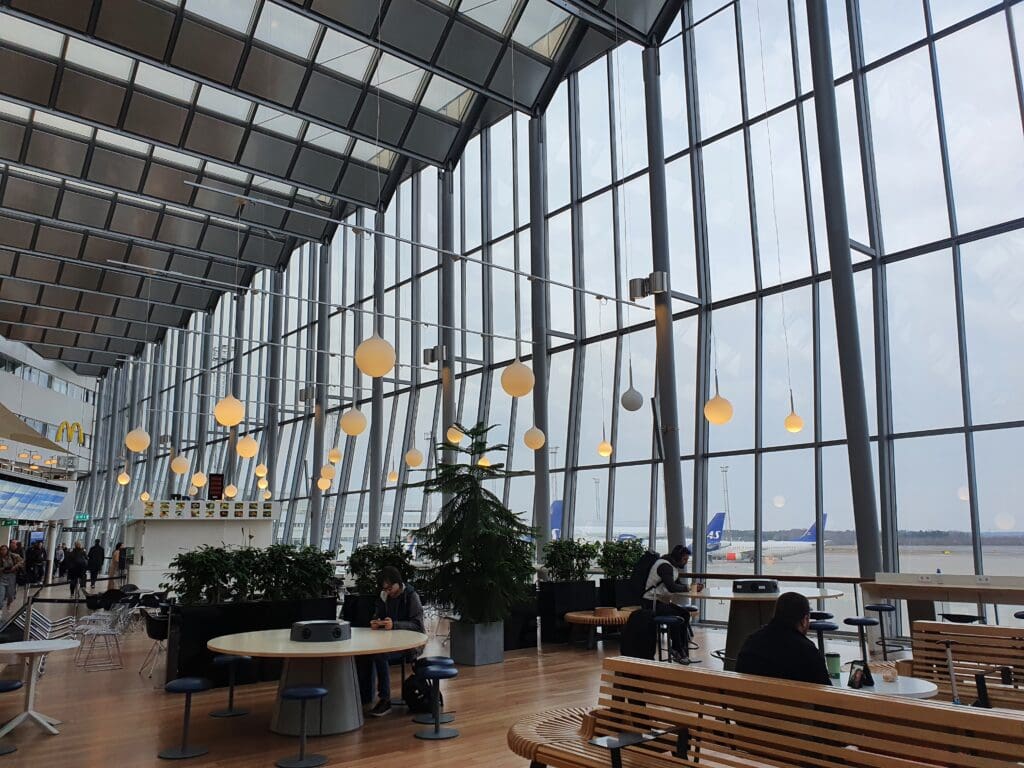 Upon arriving at the terminal, I checked the departure boards which informed me that a single desk had been assigned to check passengers in for Amapola’s morning flight to Hagfors and Torsby. Strolling through Terminal 5, with plenty of early morning flights, this was awash with activity and long queues could be seen at many of the terminal’s check-in desks. However, unsurprisingly at that time, the check-in desk for the Amapola flight was devoid of any signs of life I made my way over to the local branch of 7-Eleven for a light breakfast consisting of a kanelbullar (cinnamon bun) and a cappuccino. Once I had polished my breakfast off, I journeyed over to Sky City – a spacious, modern and pleasant complex of cafes, restaurants and shops that sits in between the terminals and provides a nice quiet place to sit and wait. Importantly for enthusiasts, this seemed to be one of the few places in the landside terminal that offered views of the action outside. Nevertheless, the dirty windows would have made photography there a little difficult. Taking a seat near one of the terminal’s large windows, I watched as a selection of airliners came and went, with examples provided by ASL Airlines, British Airways, Jonair, LOT and Scandinavian Airlines.