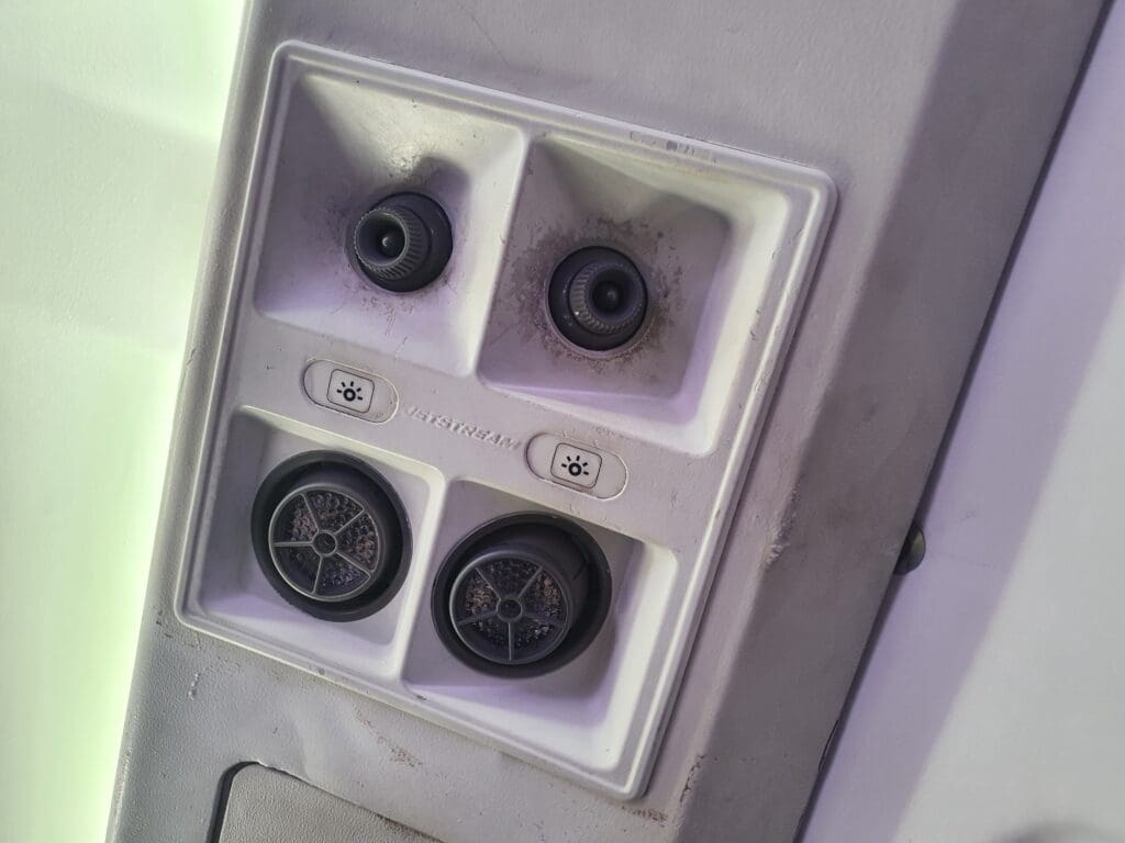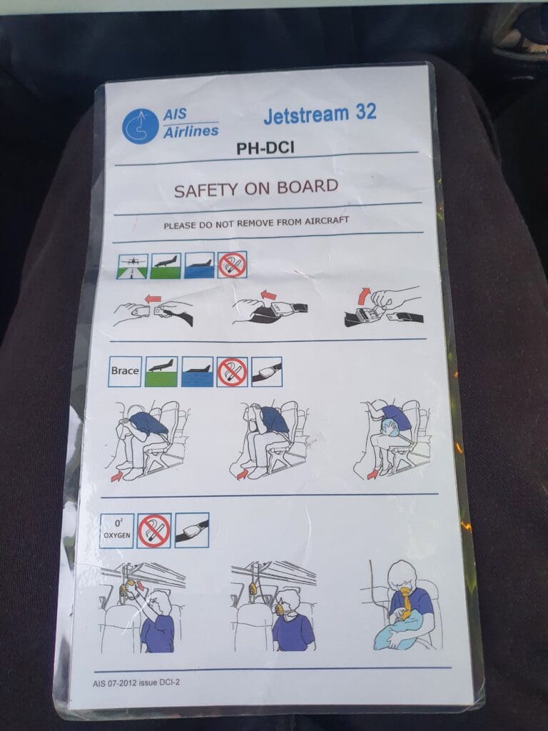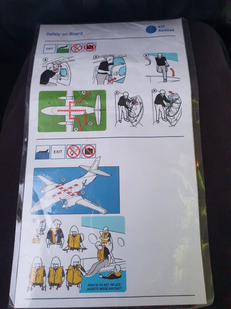 Providing a good view of both the engine and the world outside, I decided to sit in Seat 6A for the first flight to Hagfors. Inside, each of the aircraft’s seats was covered in dark blue leather, or perhaps faux leather, and sported a plain white disposable fabric antimacassar. As I took my seat, I found this to be well-padded, however the amount of legroom offered by this was far from fantastic. Although given the short flights typically undertaken by the Jetstream 32, this may well not prove to be an issue for most passengers. Having spent over two hours on the ground in Stockholm, the aircraft was in a clean and tidy state, with no signs of rubbish anywhere other than a newspaper in one of the seatback pockets. However, marks and scratches appeared to be omnipresent across the seats, the floor and cabin panelling, with these playing a role in alluding to the Jetstream’s comparatively old age. Nevertheless, despite any gripes, I was simply very happy to finally be sitting in a rare Jetstream 32 and ready to head off on my flight across Sweden! As on larger aircraft, each seat comes with its own air vent and reading light and I was pleased to find that both of these worked. Finally, turning to the seatback pocket, this contained a slightly battered safety card that was unique to PH-DCI, in addition to a plain unbranded sickbag.
