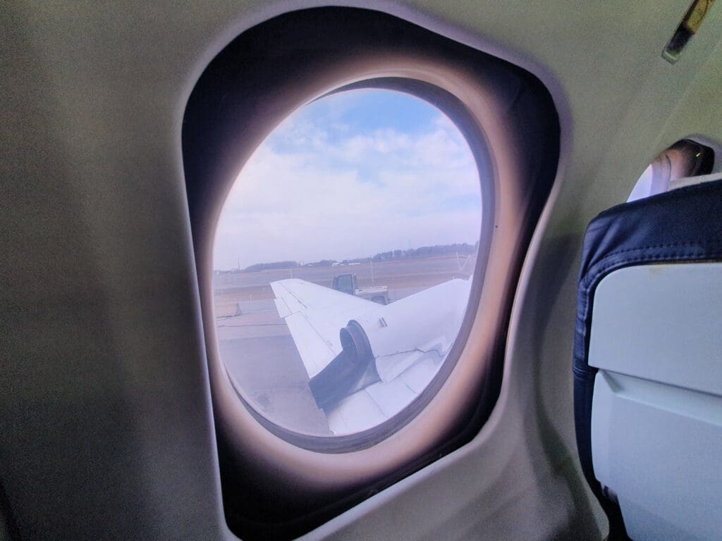 With little to see outside at this stage of the flight other than the mostly flat frozen rural scenery, and having rushed through the airport, seeing as the turbulence had calmed down I opted to make a trip to the lavatory at the rear of the aircraft. As I had first discovered on the Jetstream 41, British Aerospace’s designers designed the lavatories onboard their turboprops in a rather ingenious and space-efficient way that pre-dates Marie Kondo. Specifically, the toilet is located in a cupboard, which, when opened, seals off the entirety of the area around this – i.e. the rear of the aircraft. Nevertheless, this is far from spacious and I did have to bend over to squeeze myself into the small space. Furthermore, I was unable to get the toilet door to close properly, and even when this was closed, significant gaps allowed me to peer into the cabin. Turning to the toilet itself, this was rather utilitarian – unable to take toilet roll, whilst antibacterial wipes and gel were offered in place of a sink. However, unlikely to see much use on such short hops other than by overcurious enthusiasts, this was clean and served its purpose.