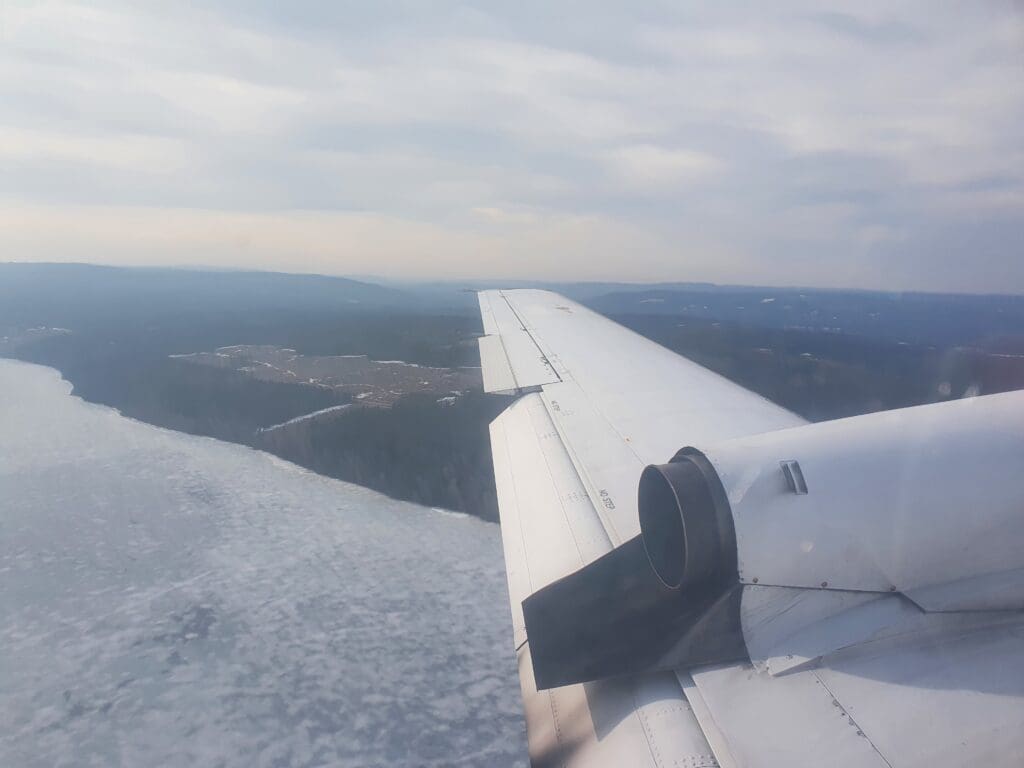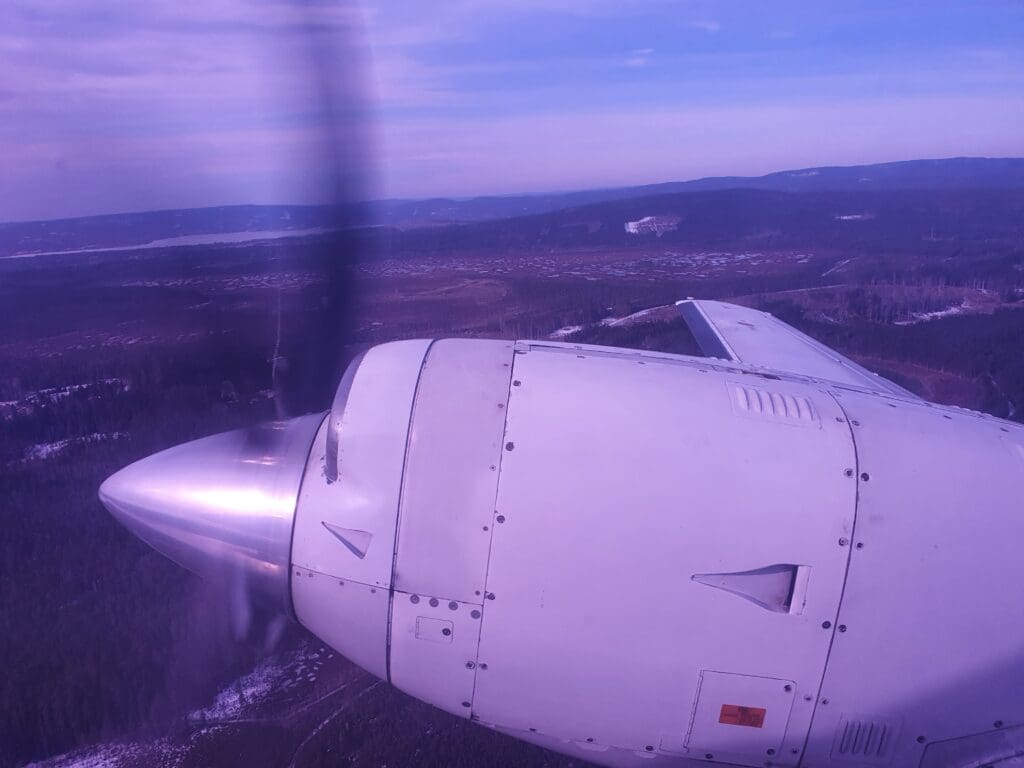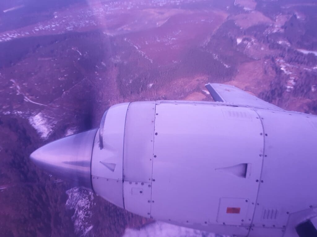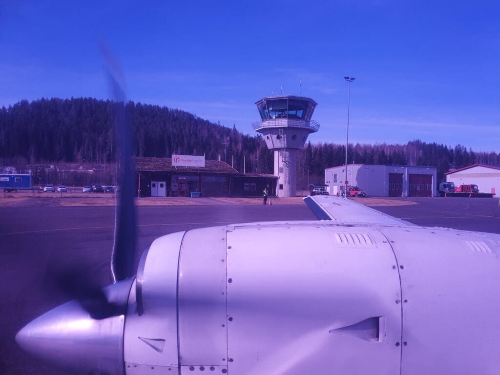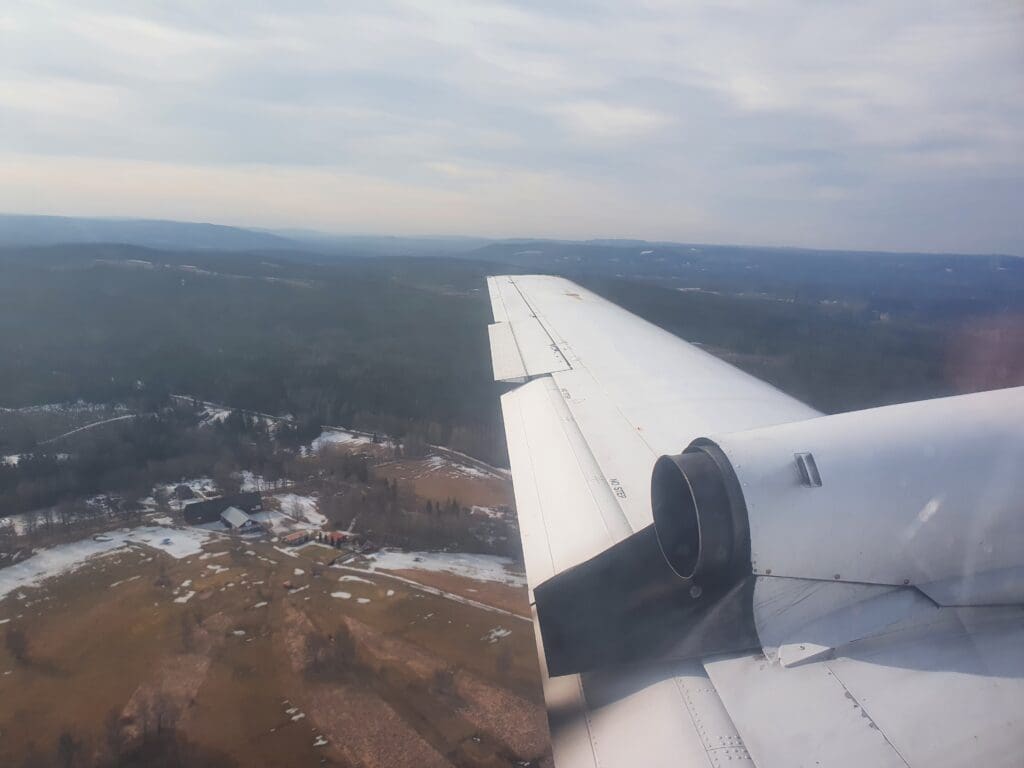 After around five minutes in the air, the Captain turned around and pointed out the airport up ahead sitting beneath snowy ski slopes. A few moments later, the aircraft could be felt commencing its descent down to Torsby Airport whilst once again another inaudible announcement was made which presumably regarded our impending arrival. After this, the mechanical squeaking sound could be heard once again as the flaps were lowered into position and before I knew it, Torsby Airport’s runway appeared up ahead.