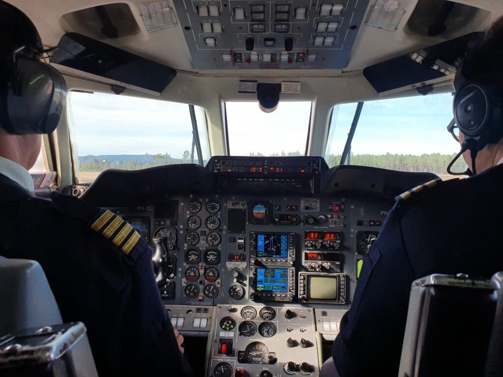 As the aircraft neared the border between Västmanland and the province of Värmland, the aircraft hit a significant patch of turbulence which resulted in plenty of bouncing and swaying. Whilst this was not the most severe turbulence that I have ever experienced, it was probably in my top five most bumpy inflight moments and at one point I spotted both of my two fellow passengers grabbing onto the seats in front of them. Fortunately, thanks to the Jetstream’s lack of a cockpit door, I was able to see that reassuringly the two pilots up ahead did not appear to be particularly phased by this and continued chatting before the commencement of the aircraft’s descent.