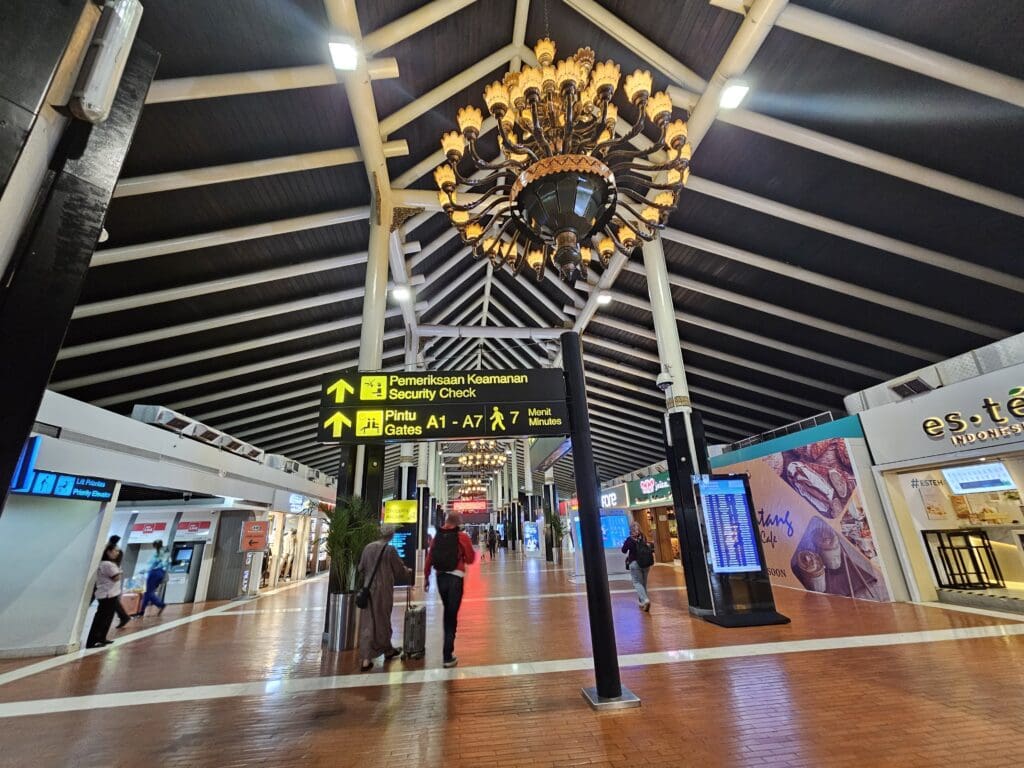 With no security check on the door, after a very quick glance at my boarding pass, I walked straight into the terminal’s long check-in hall. Whilst Terminal 1 is well known for its use of Javanese designs, this is not evident in this part of the terminal, which instead was bright, fairly modern and slightly clinical in its appearance. As was to be expected given the morning rush of departures, this part of the terminal was rather chaotic with crowds of passengers, many of whom had plenty of luggage, swarming around the check-in desks.