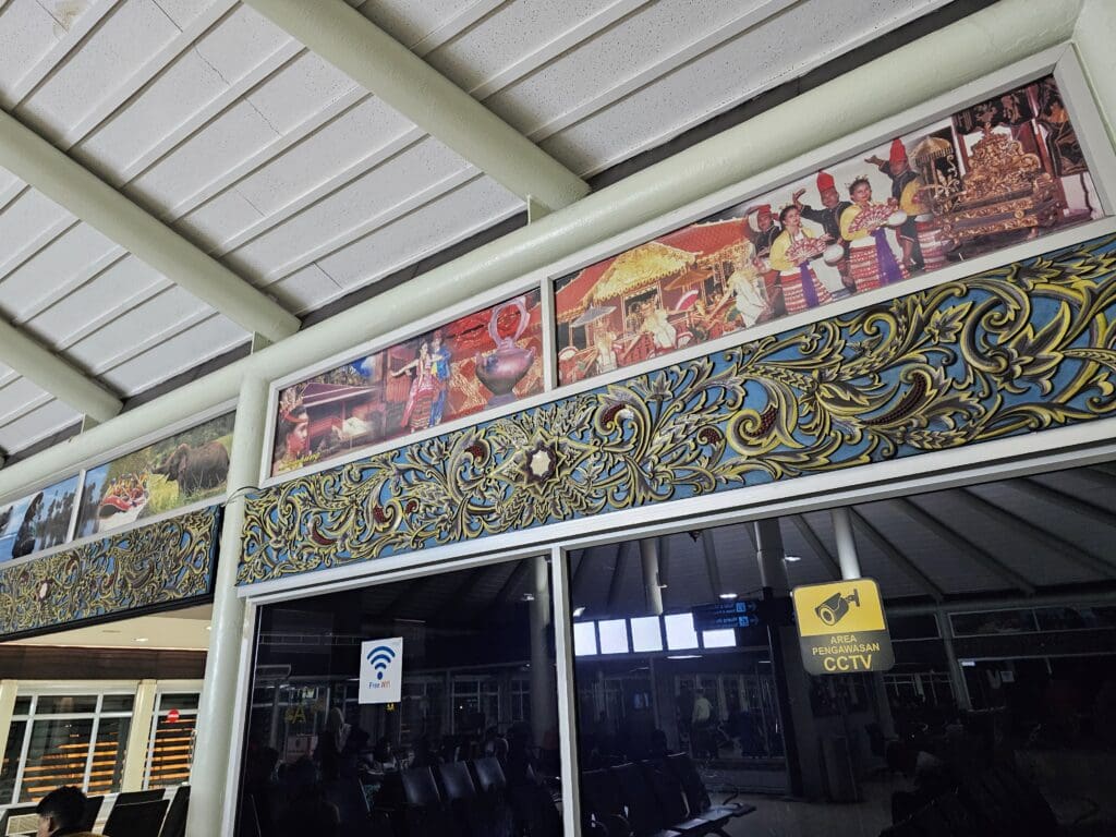 Whilst it was only 0400, the air was already hot and humid, so I decided to make a beeline for the entrance to departures rather than explore the myriad of shops, cafés and restaurants that run along the terminal’s exterior. At that time, a fair number of both staff and passengers could be seen enjoying an early morning nap on the benches outside the terminal, whilst up above, a series of large chandeliers hung down and illuminated this area. Soon, I stumbled across a row of self check-in kiosks outside the terminal’s entrance, which were available to use by Sriwijaya Air passengers. Seeing as I did not need to drop off any luggage, and with Sriwijaya Air’s passengers able to use these machines, I decided to make full use of them to print my boarding pass. After entering my reference number, the machine buffered for thirty seconds before spewing out a boarding pass for my flight to Pangkalpinang via Tanjung Pandan. With this in hand, I journeyed onwards to the entrance of the terminal, which was guarded by several security officers who ensured that only those with valid tickets entered.