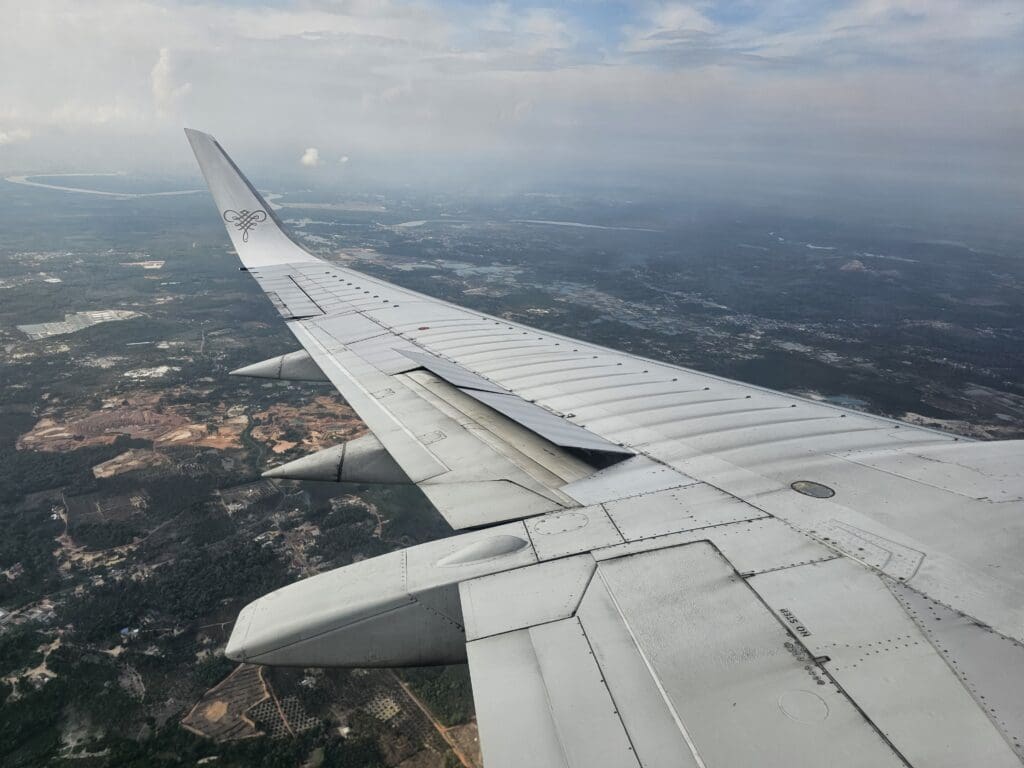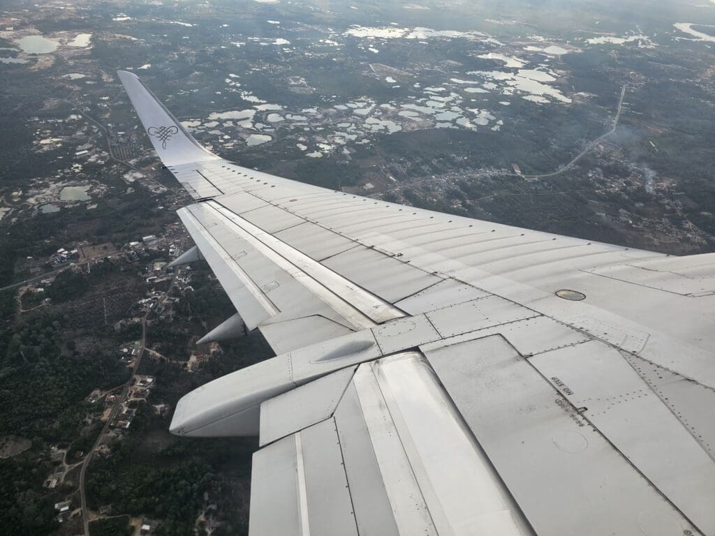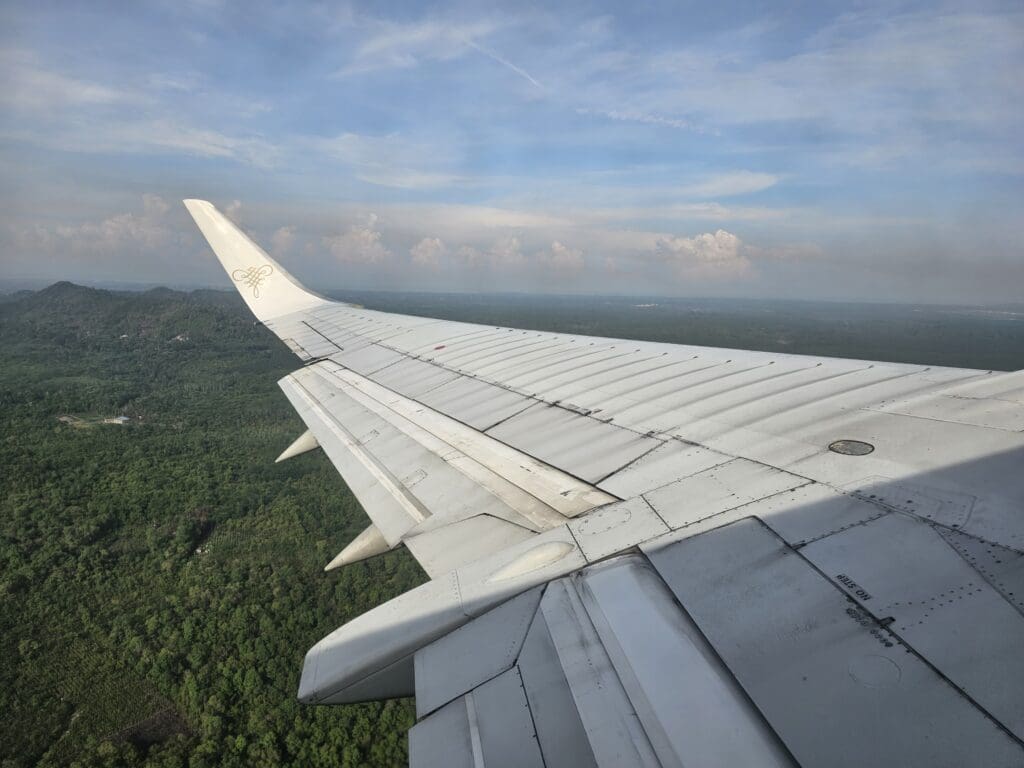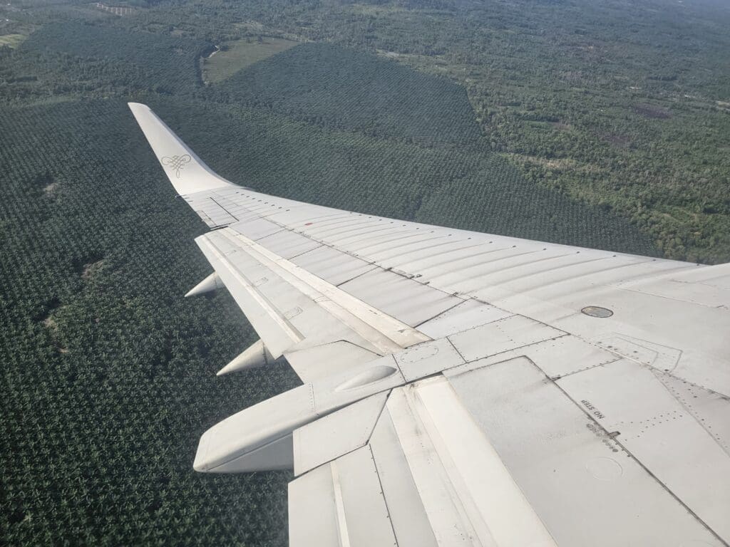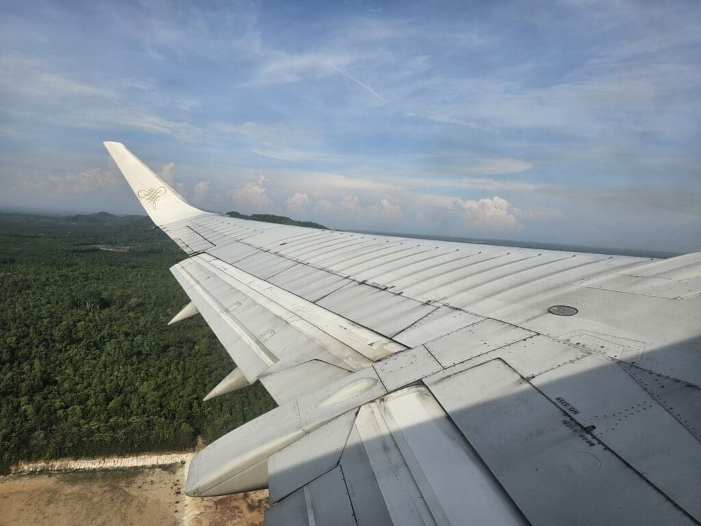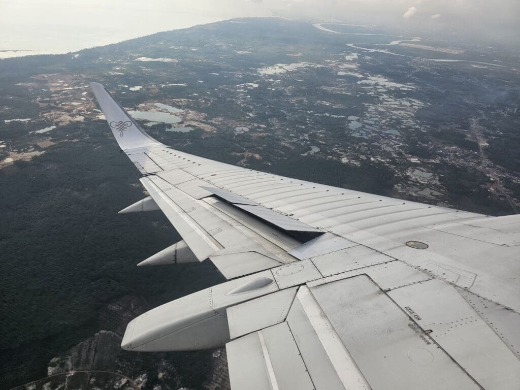 As we descended, the aircraft began to bounce around, and it wasn’t long before we made landfall over the island of Belitung’s southwestern tip near the village of Tandjungkiras. From there, we continued over the rural and green interior of the island, passing the occasional village as we descended back towards Earth.