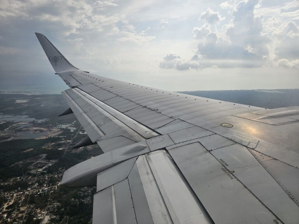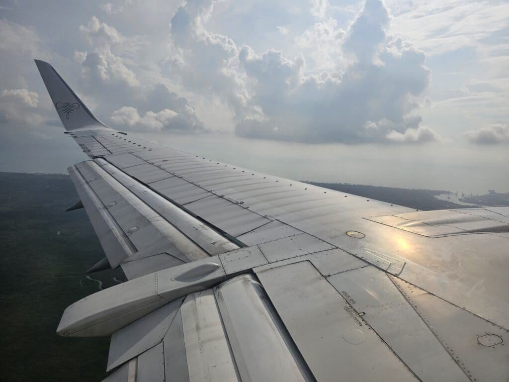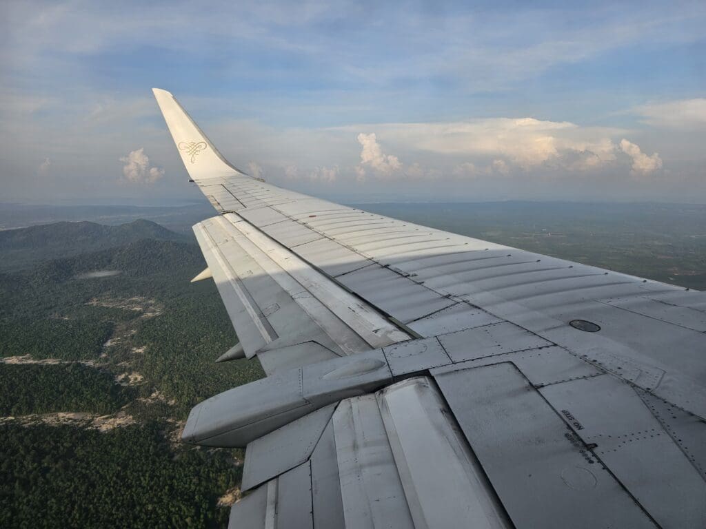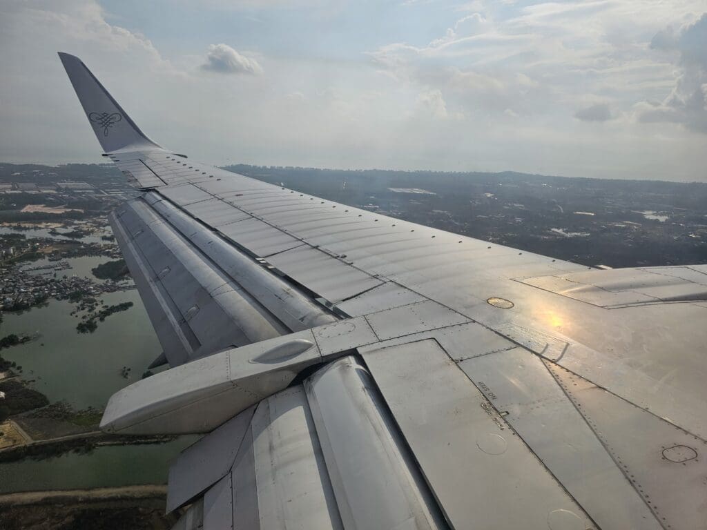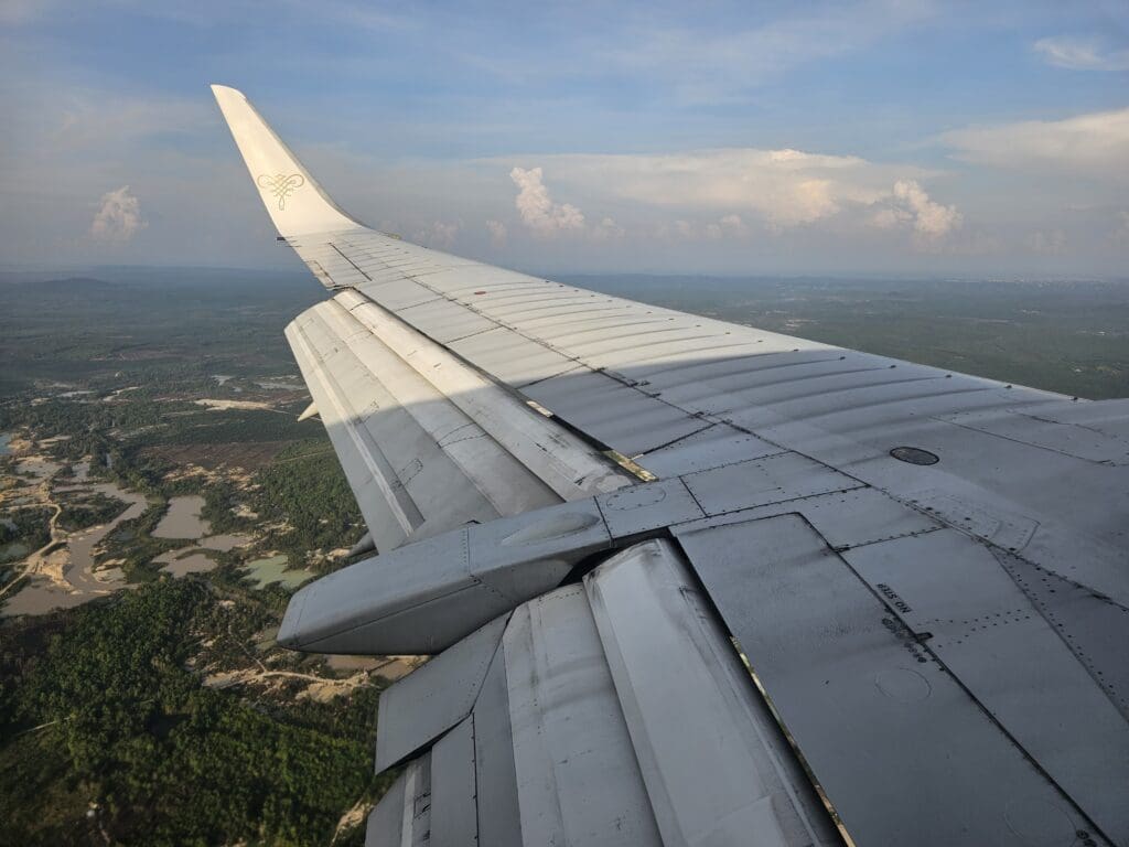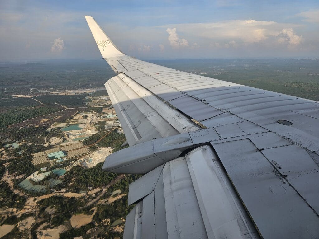 As we descended, the aircraft began to bounce around, and it wasn’t long before we made landfall over the island of Belitung’s southwestern tip near the village of Tandjungkiras. From there, we continued over the rural and green interior of the island, passing the occasional village as we descended back towards Earth.