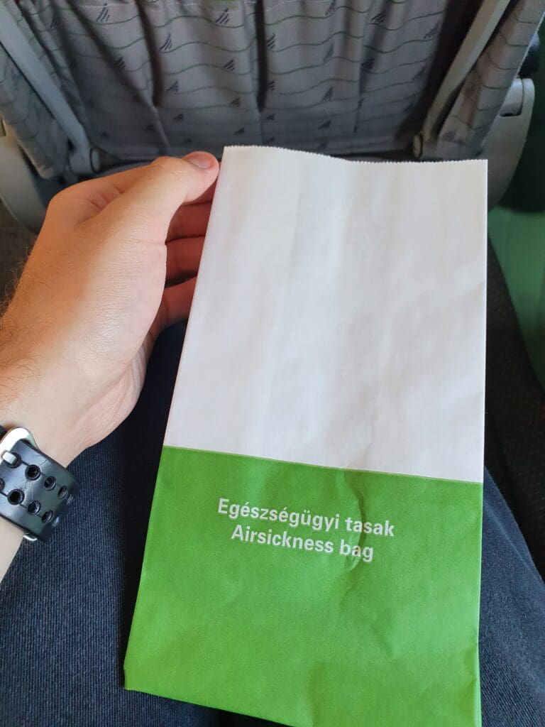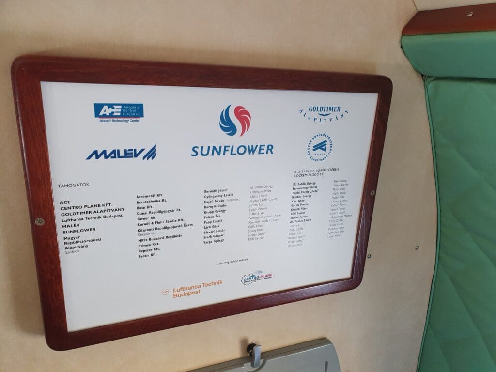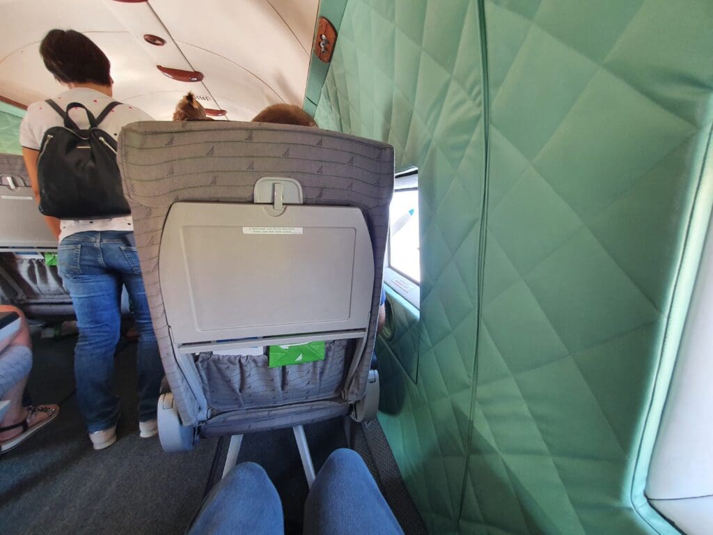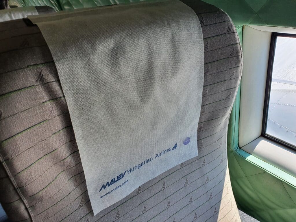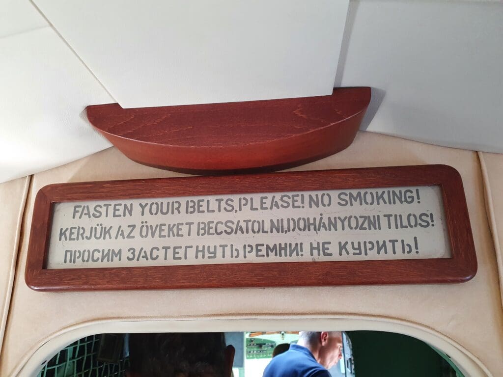 Comparable in capacity to a BAe Jetstream 31/32, Beechcraft 1900 or Twin Otter, HA-LIX is capable of carrying up to 21 passengers, with seven rows of seats arranged in a 2-1 configuration. Turning right, I began my short uphill ascent and decided to settle one of the single seats in the penultimate row, what would be Seat 6C were the aircraft to have seat numbers. Inside, each seat was comparatively large, well-padded and complete with chunky armrests, and would thus appear rather vintage if fitted to a more ‘standard’ airliner. However, they are far more modern than passengers may expect to see onboard a vintage aircraft. Indeed, these had been installed during the Lisunov’s restoration and had previously been fitted to a Malév Tupolev Tu-134. Each of these seats is covered in a light grey fabric that sports a repeating pattern of darker grey lines and Malév’s motif. Whilst the last Malév service took to the skies in 2012, the cabin remains somewhat of a homage to the defunct national carrier, complete with Malév fabric antimacassars and sick bags. Meanwhile, the sides of the cabin are covered with smart and distinctive green fabric, whilst the ceiling is a cream colour similar to that that you may see in an old train carriage. Up above, each passenger can enjoy the luxury of their own air vent, with these positioned above the large square windows. All-in-all, my first impressions of the cabin were very good, not only was the seat well padded and featured a fantastic amount of legroom, but the cabin seemed to be in a very well-loved and well-maintained state, seemingly less battered than that of the Douglas DC-3 that I had flown on earlier that year.