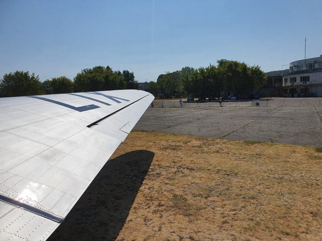 Before I knew it, the flight was nearing its end and the Lisunov crossed the Danube at which point I caught sight of the Groupama Arena, home to local football club Ferencvárosi TC. From there, the aircraft turned to line itself up for an approach to Budaörs’ Runway 27L and the flaps were extended into position. Meanwhile, outside, I caught sight of Kelenföld Station before the scenery turned a little greener as we descended over the green forests and fields that sit to the east of the airfield. Soon enough, the Lisunov whizzed over the perimeter fence and the glider launchpoint appeared. A total of 28 minutes after soaring up into the skies, the Lisunov made a gentle yet bouncy touchdown before decelerating and bouncing around a fair bit whilst several puffs of dirt rose up from the wheels.