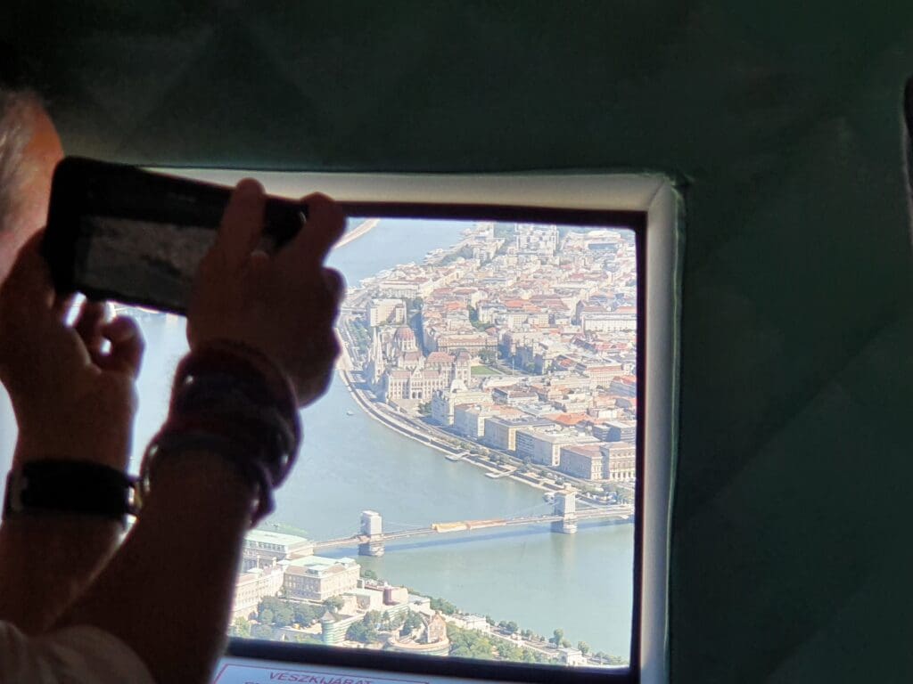 Following a short pause during which a bright yellow glider was flung up into the skies, the Lisunov taxied onto the runway before its two piston engines spooled up as plenty of noise and vibrations filled the cabin. Unlike on a modern jet airliner, there was no sensation of being pushed back into your seat as the propliner gently accelerated down Budaörs’ slightly bumpy grass runway. Within a few moments, the tailwheel lifted off the ground and the cabin levelled out before the Lisunov floated upwards into the skies. Skimming the top of the runway as it picked up speed, the Lisunov seemed to cross the perimeter fence at a fairly low altitude before climbing up to 1,800 feet where it remained for most of the flight.
