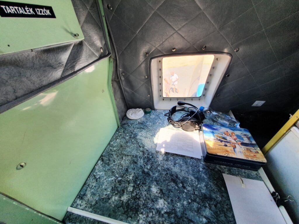 Vacating the runway at its end, the Lisunov made its way past the collection of retired military aircraft before reaching the airfield’s hangars. As we neared the terminal, plenty of observers could be seen snapping away at the rare aircraft whilst the next load of passengers waited next to the fence line. After the aircraft had slowly turned around, orienting itself into the west, the engines spooled down and the cabin temporarily fell into silence. At this time, the flight attendant said a few words in Hungarian before advising me that I could take as many photos of the cabin and cockpit as I wished. Taking the flight attendant up on their offer, once the door at the rear of the cabin had been opened and several passengers had disembarked, I made my way up to the front of the aircraft where I admired the aircraft’s Soviet-style green cockpit panels before heading back to the rear of the aircraft. After thanking the flight attendant I headed down the steps and made my way out into the boiling hot summer air.