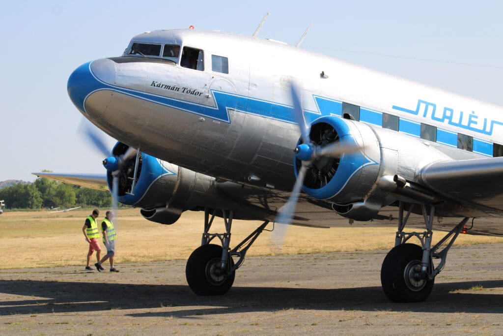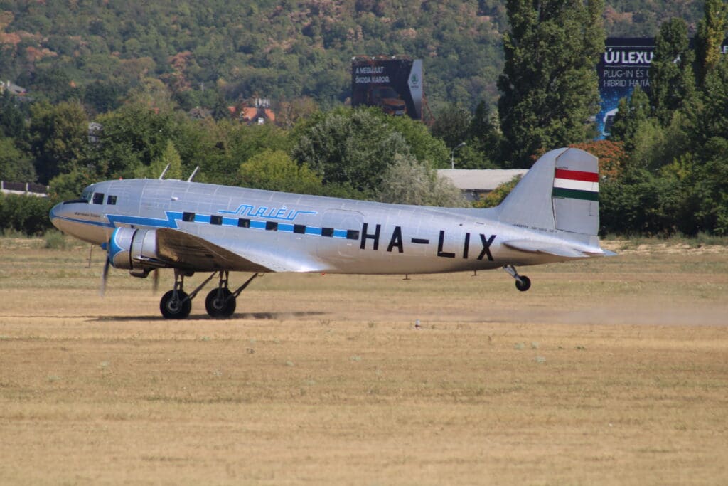 After four years and thirty thousand man hours, in September 2001 a rough and ready unpainted HA-LIX took to the skies for its first flight since 1974 and only a minor series of tweaks was needed before the Hungarian Civil Aviation Authority awarded the aircraft its airworthiness certificate. Painted in the colours of the aviation company Sunflower who had contributed to the Lisunov’s restoration, and christened Tódor Kármán in honour of the famed Hungarian aerospace engineer, the aircraft began to offer pleasure flights. Since then, the aircraft received a vintage Malév livery in 2008 and has popped up at air shows and events across Europe, ranging from small fly-ins to the ILA Berlin Air Show. In June 2019, the aircraft participated in ‘Daks over Normandy’ where it served as a Dakota stunt double and saw a team of parachutists bail out as it rumbled along the Normandy coastline. Today, the aircraft continues to operate sightseeing flights from both Budaörs Airfield and Budapest Airport, with the latter undertaken in partnership with the local aviation museum, the Aeropark.