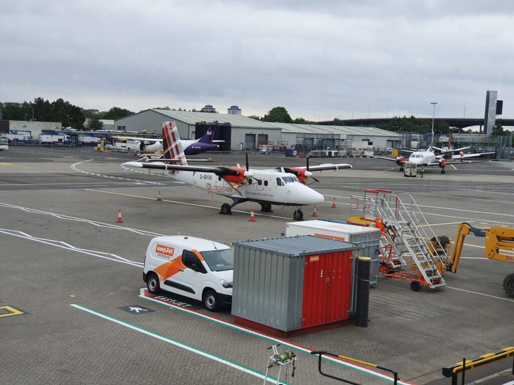 At that time in the morning, a good number of locally based EasyJet Airbus jets could be seen commencing their working days with flights to destinations south of the border – namely Birmingham, Gatwick, Luton and Stansted. Meanwhile, upon arriving it also seemed to be a busy time for Loganair with Embraer, Saab and Twin Otter flights to Benbecula, Campbeltown and Islay. As I waited, I noticed Viking Air DHC 6-400 G-HIAL being towed over to Stand 12. Once the Viking Air Twin Otter G-SGTS departed off to Campbeltown, seeing as there appeared to be little happening around the airline’s older Twin Otter, it became evident that G-HIAL would operate the morning service up to Tiree.