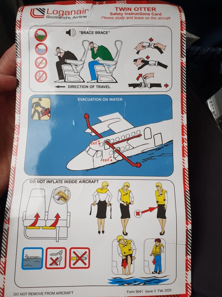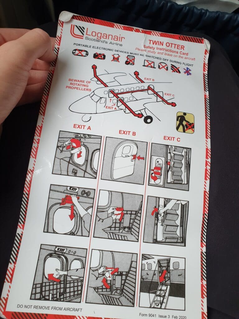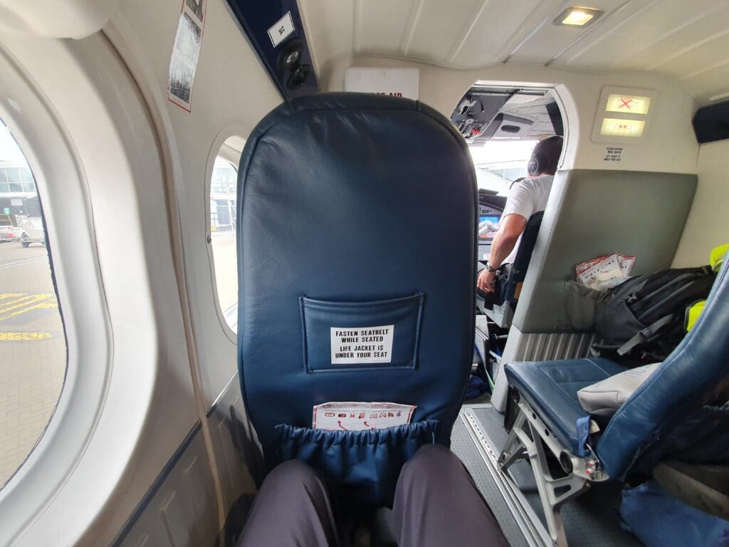 Given the small size of the Twin Otter and the light load that morning, all passengers managed to board the aircraft and strap themselves in within about five minutes of the commencement of boarding. After having a final conversation with the dispatcher, the First Officer made their way into the aircraft and the main cabin door was closed with a thud. Once done, the pilot made their way to the front of the cabin and performed a friendly and informal welcome speech, during which they offered antibacterial wipes for those who wished to disinfect the area around their seat, whilst also detailing the flight time and weather enroute. This then transitioned into a brief safety briefing before the First Officer retreated to the cockpit and strapped themselves in for departure.