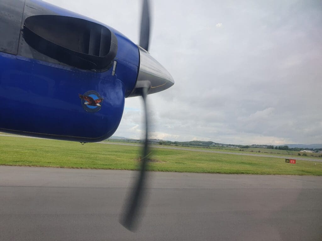 After a pause of a few minutes, whilst the two pilots appeared to run through multiple checklists, the lack of soundproofing in the Twin Otter soon became evident as the two turboprop engines powered up and the Hartzell three-blade propellers whirled into life. This filled the cabin with a significant amount of noise and vibration. Soon, and for the first time in my life, the aircraft pushed itself back from the terminal under its own power and pointed itself in the direction of the runway. With the wind blowing in from the west, Runway 23 was in use for all arriving and departing aircraft that morning.
