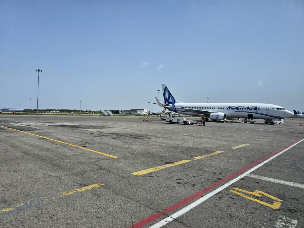 Following our short journey over from the terminal, the bus neared the cluster of SCAT Airlines Boeing 737s and soon came to a halt near the front of one of these. That day, Boeing 737-82R UP-B3732 had been assigned the task of flying the late morning service up to the capital city. Assembled at Boeing’s factory in Renton, this aircraft first took to the skies in August 2008 making it almost fifteen years old at the time of my flight. As diehard enthusiasts will know from the aircraft’s customer code of ‘2R’, this commenced its career in Turkey where it flew for low-cost carrier Pegasus and sported the name Gülce. Over the next eight years, the aircraft visited destinations across Pegasus’ growing route network encompassing Central Asia, Europe, the Middle East and North Africa from its hub at Istanbul Sabiha Gökçen. Remaining in the Pegasus bubble, in June 2016 the aircraft was shuttled to Kyrgyzstan where it operated for partially owned subsidiary Air Manas as EX-37802 and was given the name Bubusara. In October 2018, the aircraft was ferried back to Istanbul and re-entered service with Pegasus with the name of Hüma and registration of TC-CCK. During this portion of the aircraft’s career, in January 2020 the jet was involved in a serious incident when it ran off the runway in Istanbul whilst landing in crosswinds. Following repairs, this was pressed back into service and remained with Pegasus until October 2021 when it was passed on to its current operator, SCAT Airlines. In the week prior to my flight, the aircraft had been flying almost non-stop and flown a total of 37 sectors covering at least 43,600 miles, visiting Aktobe, Aktau, Almaty, Astana, Atyrau, Istanbul, Moscow Sheremetyevo, Moscow Vnukovo, Petropavl, St Petersburg and Yerevan.