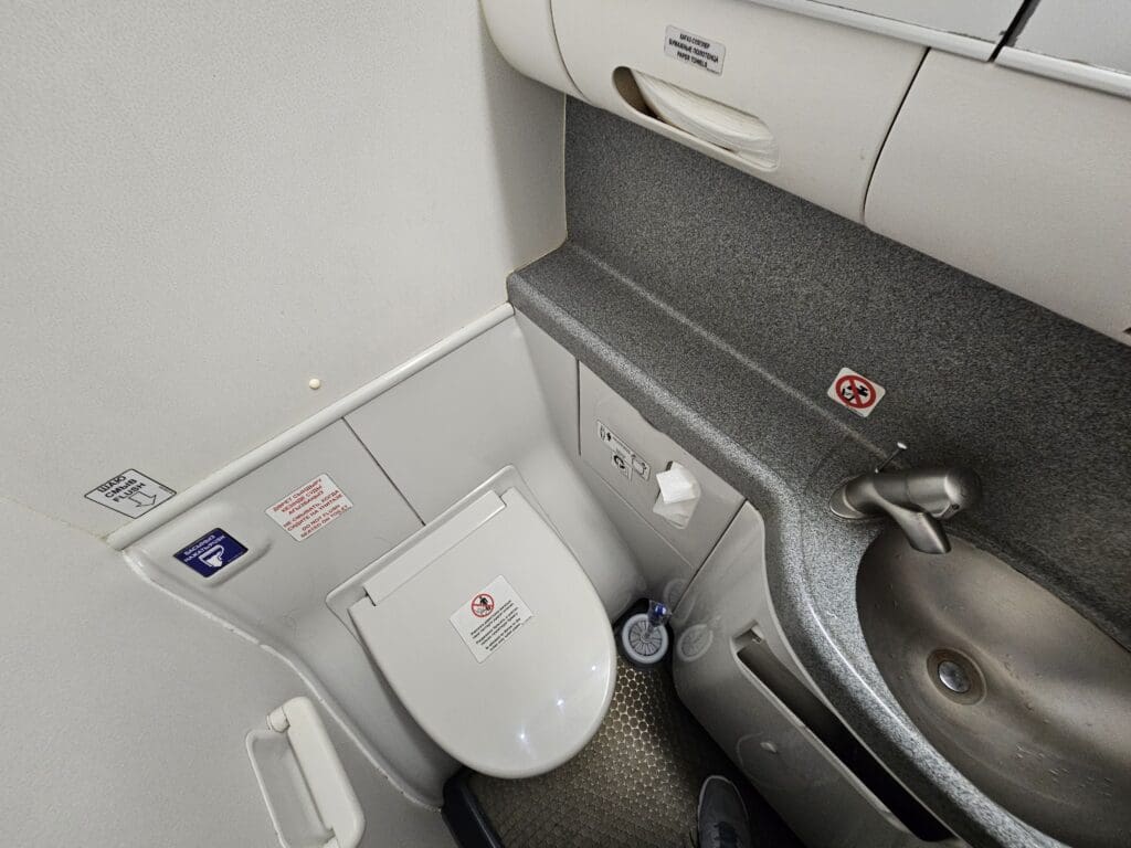 Passing my row, noticing that both the aisle and middle seat were taken and that I would otherwise be unlikely to get the opportunity to do so on this comparatively short flight, I decided to make a quick trip to one of the two lavatories at the rear of the aircraft. Once there, I was pleased to find this to be clean and in a reasonable condition.