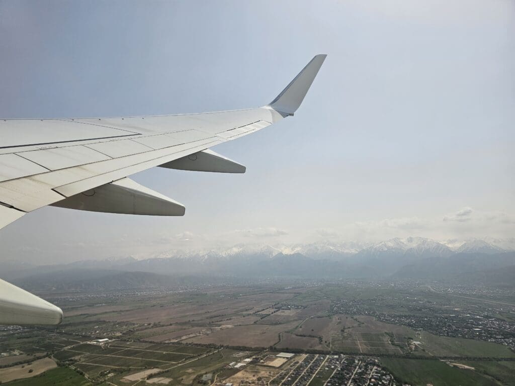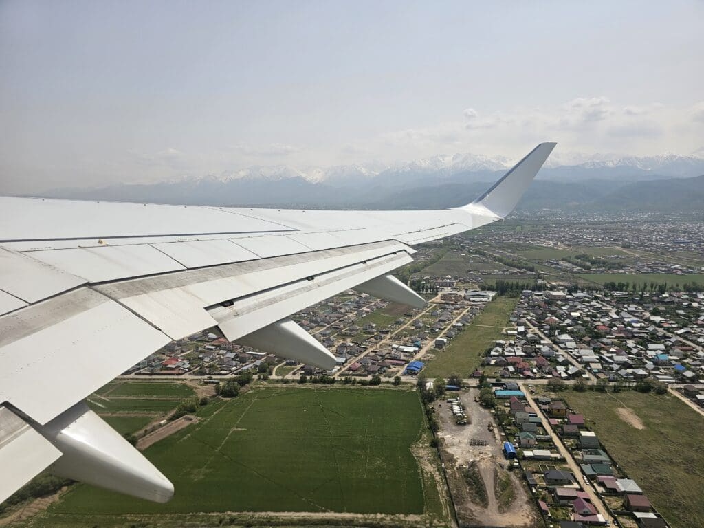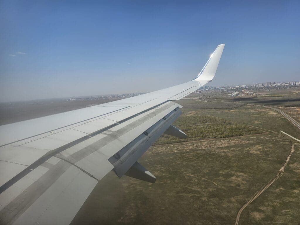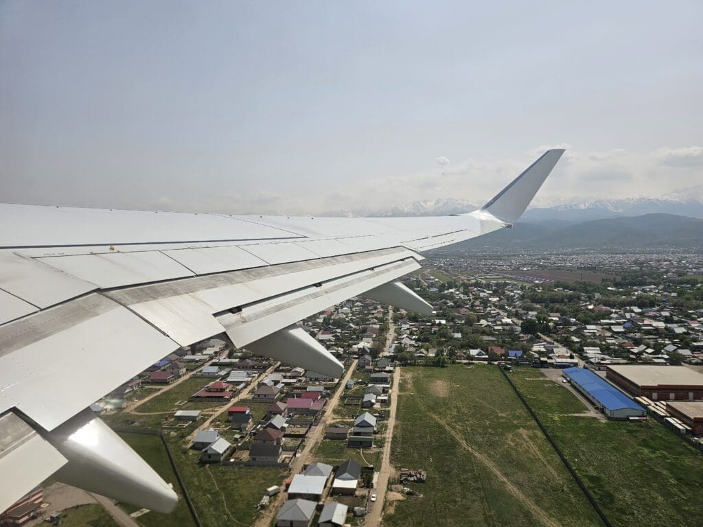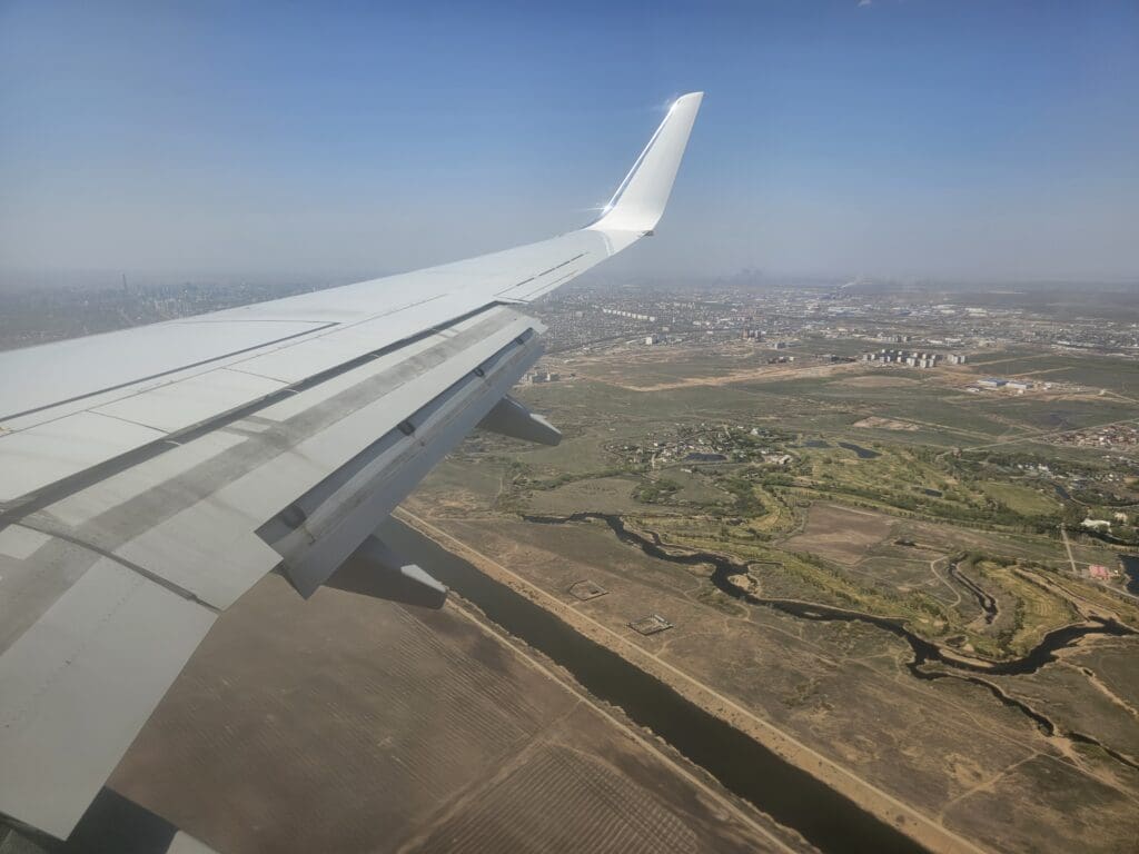 Upon arriving at the runway, the Boeing came to a halt just as a FlyArystan Airbus A320 could be seen undertaking a go-around. Once this passed overhead, the Boeing made its way onto the runway and came to a halt for around a minute. At 1237, the two engines powered up and the aircraft performed a powerful takeoff roll, soon rocketing upwards into the skies. Whilst slightly hazy, a good view of the picturesque Tian Shan Mountains could be had as we climbed over the fields and towns that sit just to the east of the airport before the aircraft banked onto a northerly heading that would take us to Astana with no further turns until on final approach.