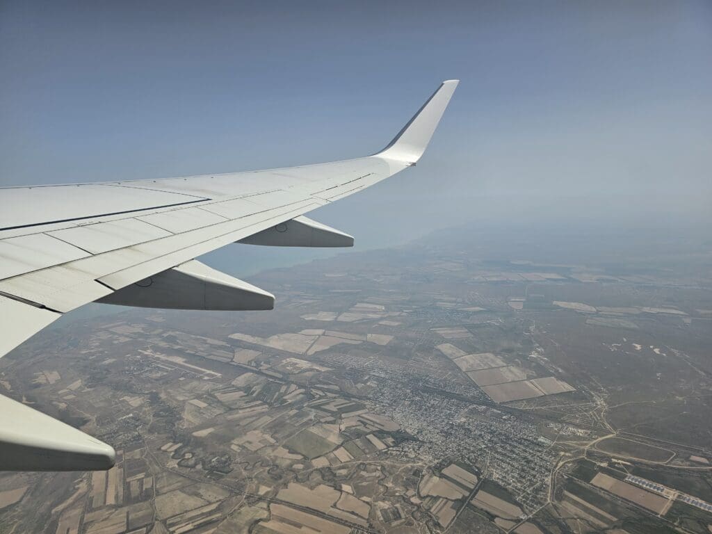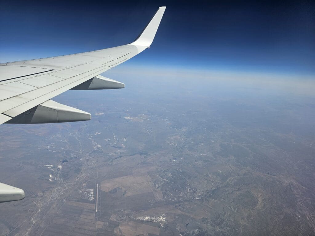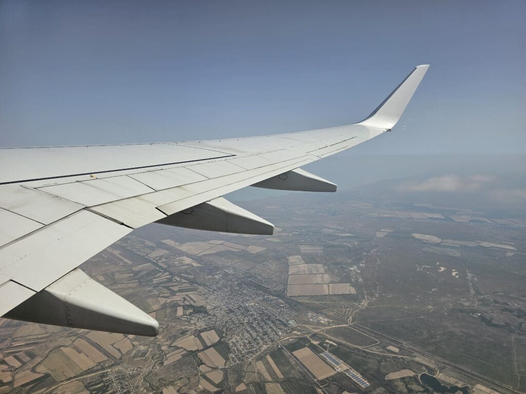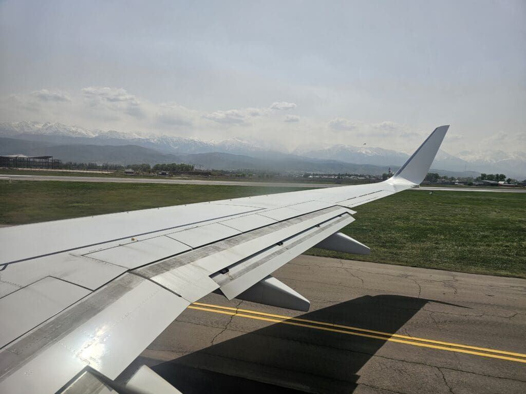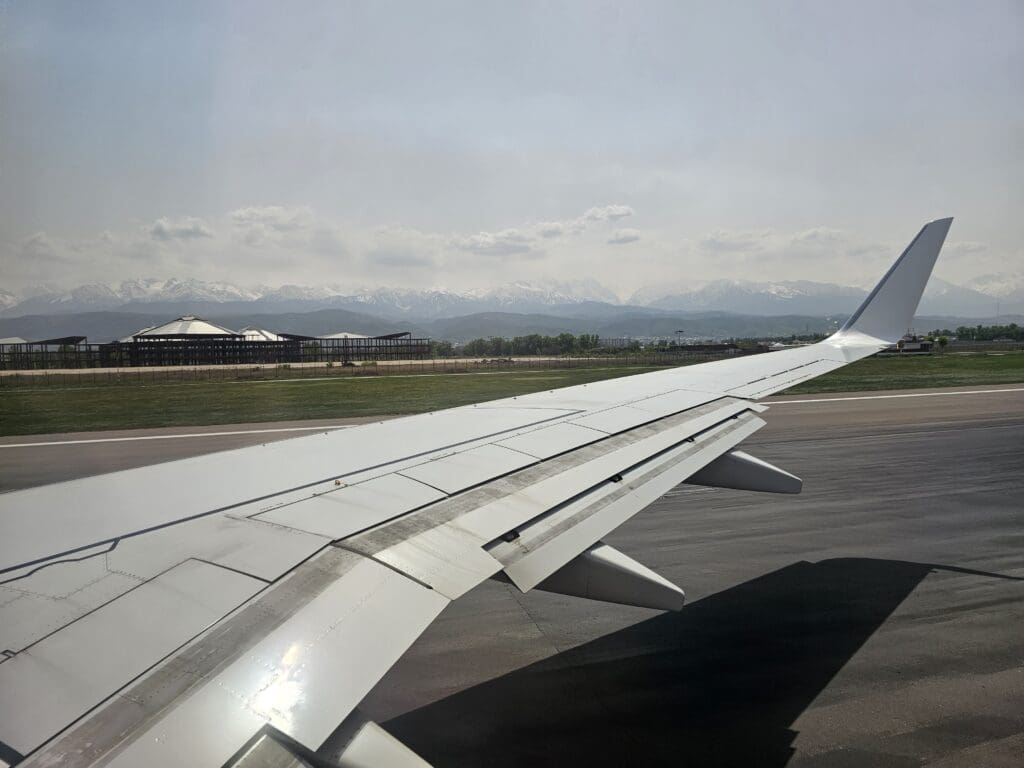 Upon arriving at the runway, the Boeing came to a halt just as a FlyArystan Airbus A320 could be seen undertaking a go-around. Once this passed overhead, the Boeing made its way onto the runway and came to a halt for around a minute. At 1237, the two engines powered up and the aircraft performed a powerful takeoff roll, soon rocketing upwards into the skies. Whilst slightly hazy, a good view of the picturesque Tian Shan Mountains could be had as we climbed over the fields and towns that sit just to the east of the airport before the aircraft banked onto a northerly heading that would take us to Astana with no further turns until on final approach.