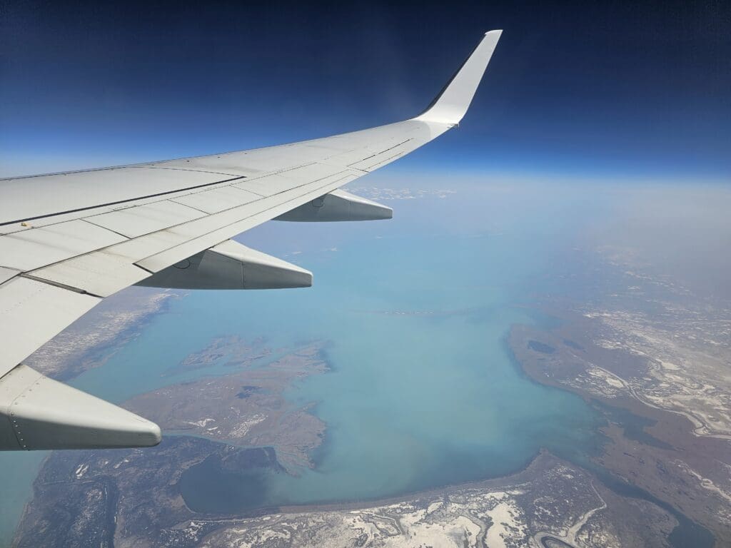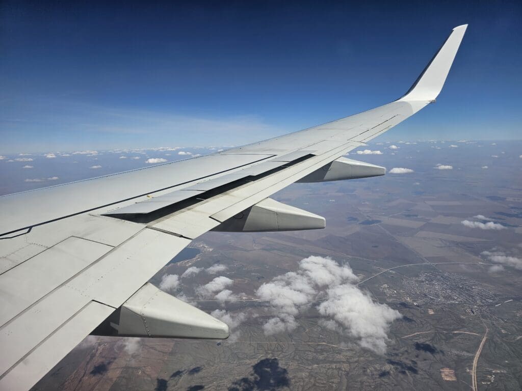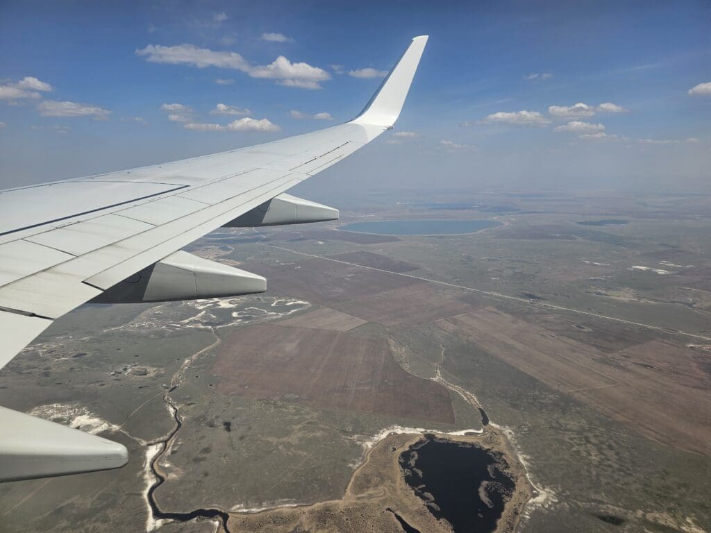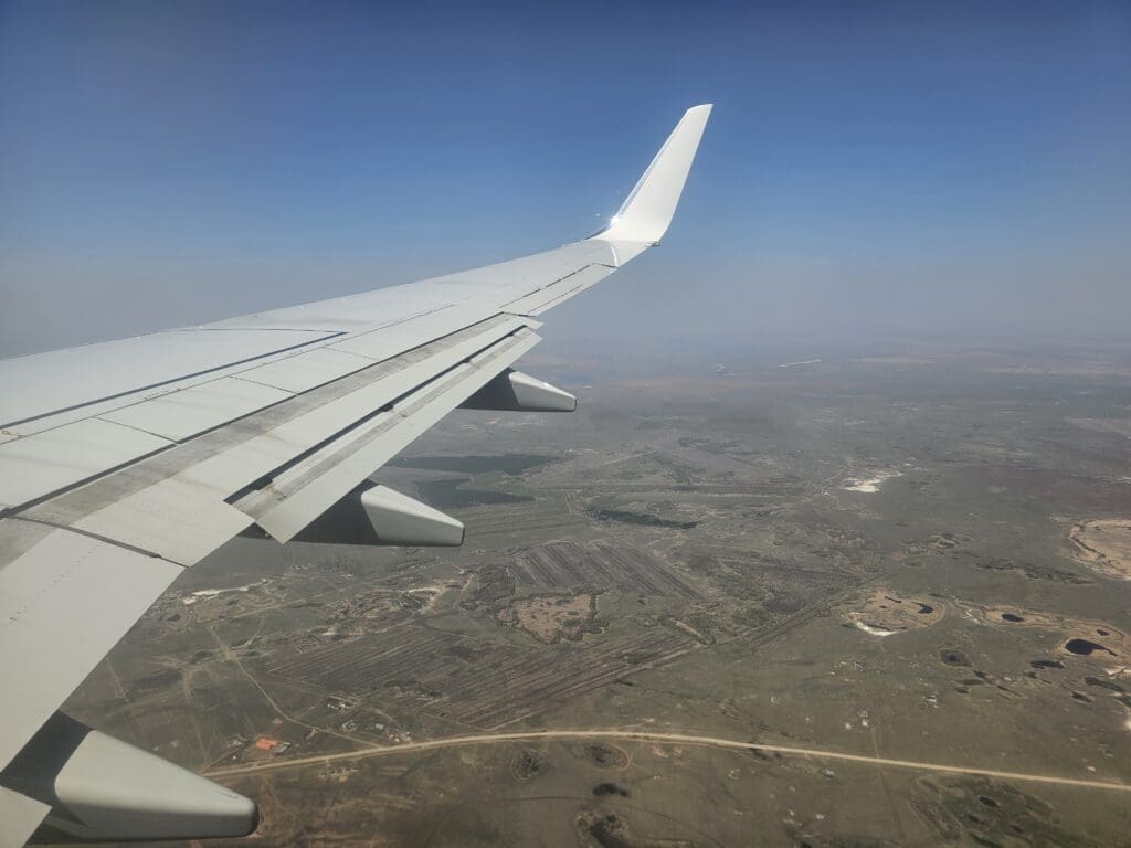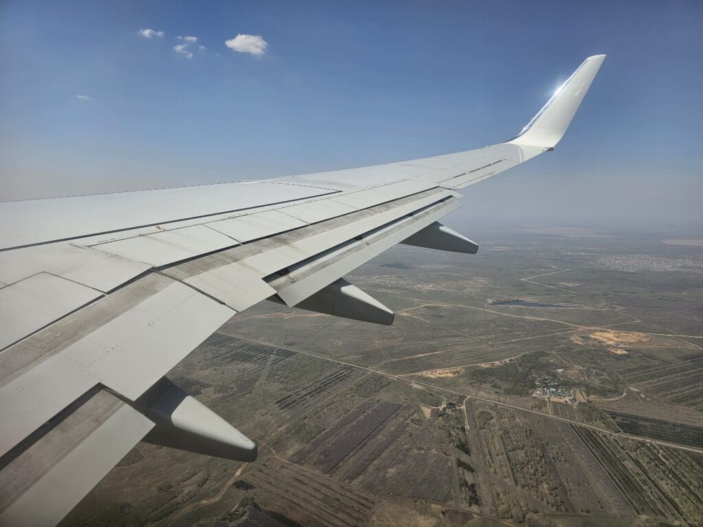 A short time after the seatbelt signs had been reilluminated, the crew passed through the cabin ensuring all was in place for our arrival and collecting any remaining rubbish before strapping themselves in with plenty of time to go until landing. After leaving Karaganda behind, the town of Termitau and the neighbouring Samarkandskoe Reservoir could be seen before we followed the course of the M-36 motorway up to Astana. At this point of the flight, a few bumps could be felt as we sank downwards, although these were not particularly rough and did not warrant any major concern. Continuing onwards, several lakes, villages and small towns could be seen sitting on the flat steppe and before I knew it the flaps were partially lowered in preparation for our arrival.