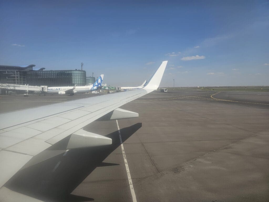 At 1402, the Boeing returned to earth with a firm thud at which point many passengers applauded the skills of the pilots and we decelerated rather rapidly before vacating the runway to the right. As we decelerated, I caught sight of a rare (for me) Sukhoi Superjet operated by Russian leisure carrier Red Wings Airlines. As we made our way to the terminal, in the usual manner, a post-arrival announcement was made and we were all thanked for flying with SCAT Airlines and advised to remain seated until the seatbelt signs had been switched off. With Astana Airport enjoying many more jetbridges than Almaty, that afternoon the Boeing cautiously pulled into stand 4 at the main terminal and a short time later, a jetbridge was connected. Once connected, it wasn’t long before disembarkation commenced and I soon headed forward and made my way down the cabin. After thanking several of the flight attendants, I stepped off the aircraft and headed up into the terminal building ready to explore the sights of Astana, ending my second-ever flight with SCAT Airlines.