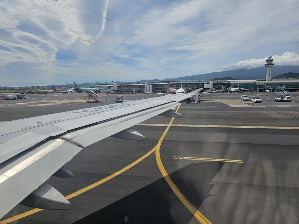 Like many airlines across the world, the onset of Covid saw a rapid decrease in Vueling’s operations and as a result, EC-JGM entered storage and remained out of passenger use for well over two years, with this being kept at Barcelona, Castellón, Ciudad Real and Malta. Finally, in June 2022, the aircraft re-entered Vueling service, although this was not to last long and in January 2023, the aircraft was retired from Vueling for good. Taken up by FTAI Aviation, the Airbus was given a temporary Austrian registration of OE-LOH and was bound for start-up Uzbek airline Panorama Airways. Arriving in Tashkent in March 2023, the Airbus remained on the ground in the Uzbek capital for months until November of that year. With Panorama Airways never taking this up, the aircraft was flown to the Serbian capital, Belgrade, for checks before being repainted into Aero K’s livery in early 2024. Finally, in February 2024, the aircraft was ferried from Belgrade to Cheongju, making a mid-journey stop in Almaty, before commencing its new life with Korea’s new low-cost carrier. In the week prior to my flight, the aircraft had operated almost exclusively between Cheongju and Jeju. The exception to this being two rotations to Osaka Kansai, and a single trip to the Mongolian capital, Ulaanbaatar.