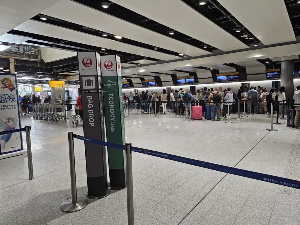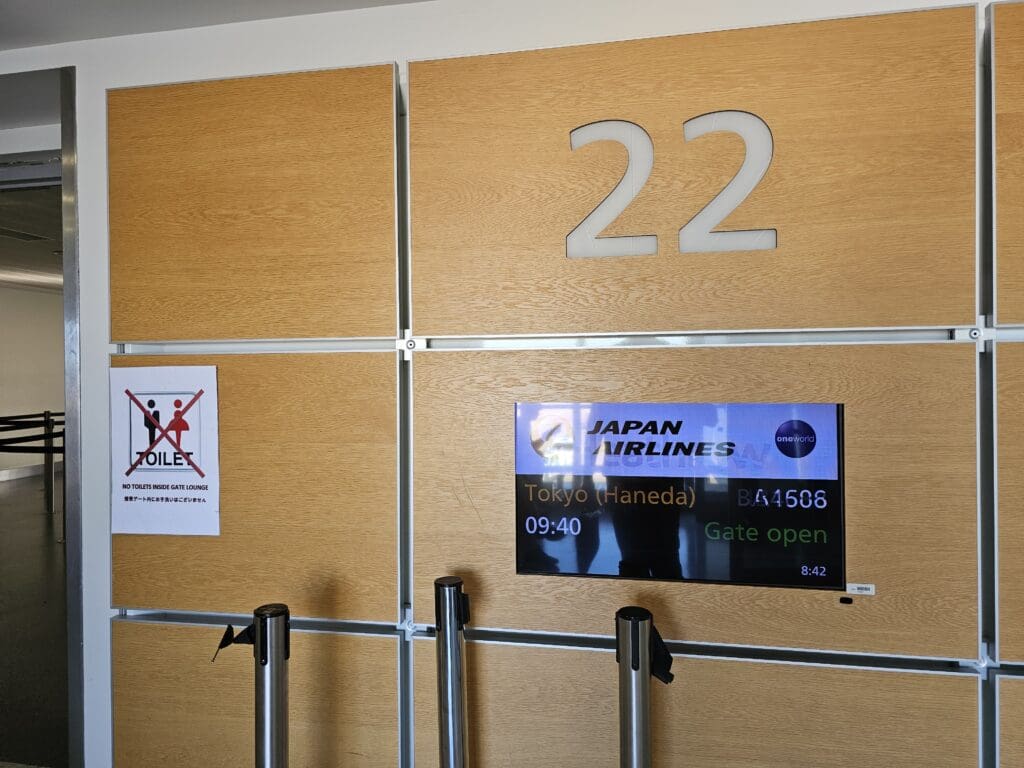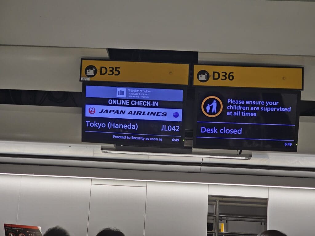Two days prior to departure, I received an email from Japan Airlines inviting me to pre-book a timeslot at security. Whilst this was a wise idea, uncertain of my exact timings I decided to pass and hope that I wouldn’t have to wait too long. Check-in for Japan Airlines’ services opens up 24 hours prior to departure, however, with a one-way ticket to Korea, I wasn’t too sure whether I would actually be able to do this. As it turned out, I was able to do this and without too much issue, I received a boarding pass for both my flight to Japan and onward connection to Korea. Nevertheless, considering that I had pre-selected a seat and would still have to visit a counter to drop off my bag, this was not a massive victory!