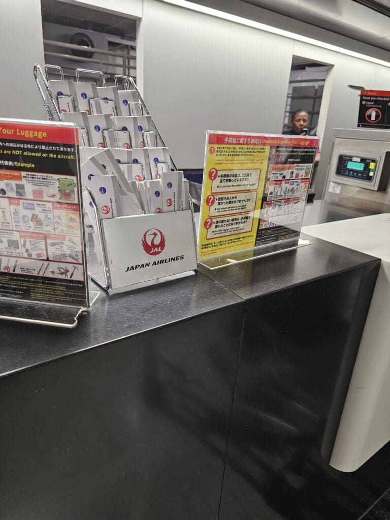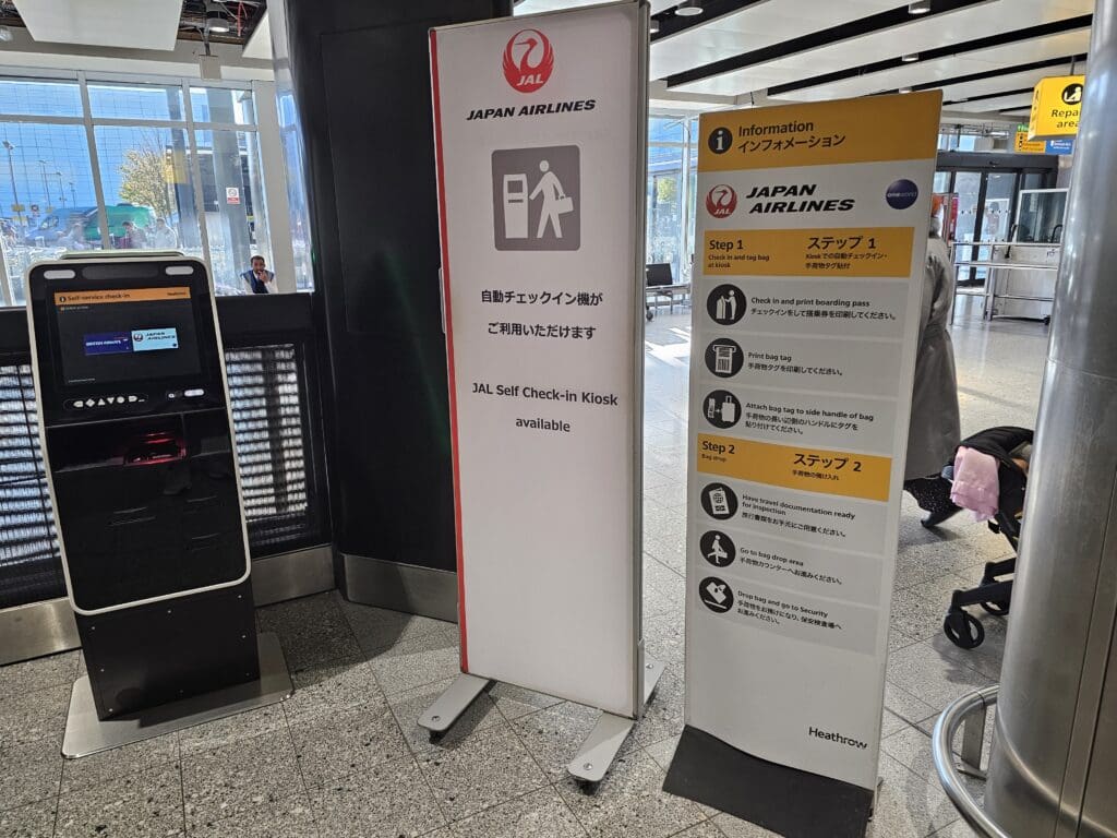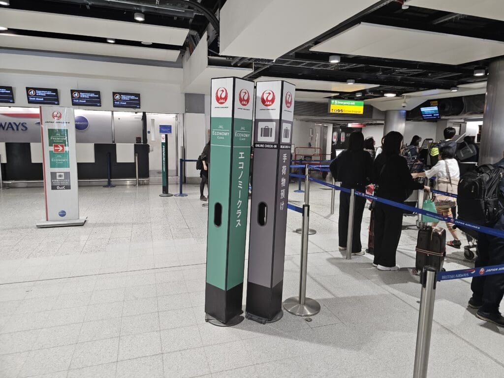 As I approached Zone D, I noticed that Japan Airlines’ passengers could British Airways’ self-check-in machines. Not only could these print off flimsy paper boarding passes, but they also had the ability to print off baggage tags. Deciding to use these in the hope that this would save time when dropping off my bags, I soon printed off my baggage label, affixing this to my suitcase before trundling over to Japan Airlines’ check-in area. With two daily flights, unsurprisingly Japan Airlines’ check-in desks were well branded, with seven of these offered (three for Business, two for Premium Economy and two for Economy), along with a ticket desk and service counter. In addition, plenty of smartly dressed bilingual Japan Airlines staff could be seen lingering around the check-in area, welcoming passengers and guiding them to the correct queue, with these staff supplemented by Menzies staff. I should however note that whilst sporting different uniforms, the Menzies staff all wore a Japan Airlines name badge which displayed their name in both English and Japanese.