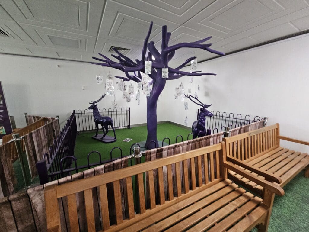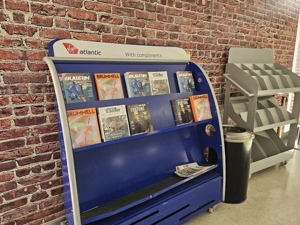 Once I returned to the gate, I was greeted by a friendly Japan Airlines staff member who asked me if I was heading for Tokyo, and, once I had confirmed that I was, I was guided towards the Economy side of the podium. With no queuing required, I had my boarding pass scanned and my passport checked before being allowed to enter the waiting area. This waiting area was compact, and I wouldn’t have liked to spend any significant amount of time there before heading off on say a full high-density seating widebody aircraft. Interestingly, part of the waiting area appeared to have been designed to resemble a park and came complete with real wooden benches, two purple deer and a purple tree. Later research revealed these to have been installed following the 2012 Olympics, whilst messages from Olympians and staff could be seen hanging from the tree’s branches. Other than this, the area was home to vending machines selling drinks, snacks and ice creams, a television, a payphone(!) and a Virgin Atlantic branded magazine rack with copies of Brummell, Business Traveller, Fortune, The Red Bulletin and Stylist for passengers to take and read at their leisure. Despite not being the most spartan gate holding area, this did seem to lack plug sockets, and more importantly, toilets! However, rather thoughtfully a sign had been erected in Japanese and English at the entrance to the gate warning passengers about the lack of lavatories in this area.
