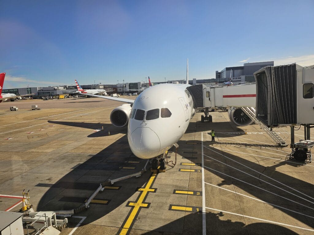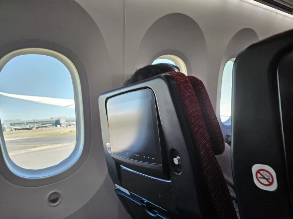 Whilst the gate failed to offer the best views of Stand 322, the waiting Dreamliner could be seen through a few dirty and tinted windows. That day, I would travel to Japan onboard Boeing 787-9 Dreamliner, JA866J. Hailing from Boeing’s South Carolinian plant in Charleston, this Dreamliner carries the line number 479 and first took to the skies in October 2016. This made it a ripe 7.6 years old at the time of my flight. Destined for Japan Airlines, in December that year the aircraft was ferried directly to the airline’s Tokyo Narita hub where it was soon pressed into service, connecting Japan with short, medium and long haul destinations across the world. In the week before my flight, the aircraft had undertaken eleven sectors and connected Tokyo Haneda with Beijing, Helsinki, Hong Kong and London Heathrow. Fortunately, these seem to have all gone to plan, although the aircraft had suffered one notable incident during its lifetime. This took place in July 2017 when the aircraft experienced engine issues at the start of a flight from Kuala Lumpur to Tokyo Narita which saw it return to Malaysia. Returning to the present, looking outside, impressively, despite the aircraft’s very white livery, this appeared to be clean and in good condition, with few dirt streaks or marks visible on the fuselage, giving me hope that the interior would be equally spotless!