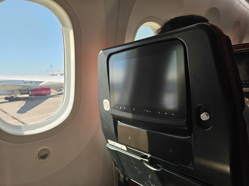 Once I had made it to Row 53, I decanted everything I thought that I would need for the next fourteen hours (of course, I ended up failing in this task and would have to retrieve more belongings later on in the flight!) before settling in for the journey ahead. Once seated, I was delighted to find that the area around my seat was spotlessly clean and tidy. I did however notice a few marks and scratches on the seat’s black backing, as well as on the inflight entertainment screen itself, however, it is fair to say that this particular Dreamliner was in a much better state than many aircraft that I have flown on. When it came to comfort levels, the seat itself offered an abundance of legroom, however, I did find the seat itself to be a little firm which became evident seven or so hours down the line!