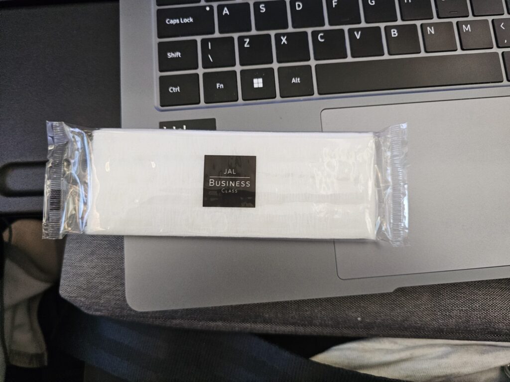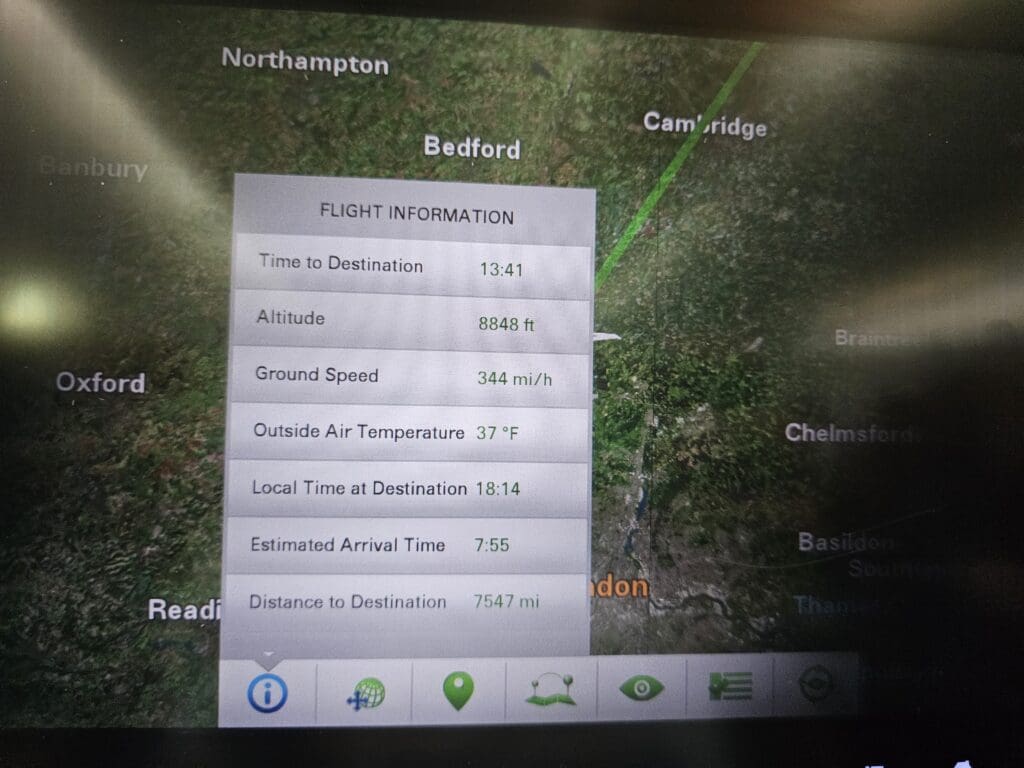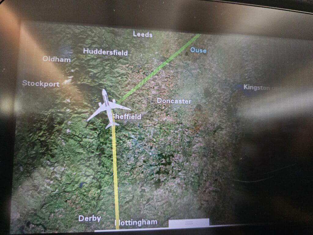 Thanks to the good weather, the climb ended up being a smooth affair and thus the seatbelt signs were extinguished as soon as we passed through 10,000 feet. By this time, the Dreamliner was passing over the Hertfordshire conurbations of Hatfield and Welwyn Garden City. Inside the cabin, this was followed by what I assume was the usual announcement regarding seatbelts although unfortunately thanks to the aforementioned issues with the PA system, this could not be heard. After passing Luton, the Dreamliner headed northwards up the centre of the UK and roughly followed the course of the M1 motorway. This took the aircraft past the likes of Bedford, Northampton, Leicester, Loughborough and Nottingham. A total of just 21 minutes after rocketing off from Heathrow, the aircraft cut above the skies of Sheffield where I had started my journey earlier that morning before reaching Leeds a couple of minutes. As we soared over West Yorkshire, the Dreamliner levelled off at our initial cruising altitude of 34,000 feet where it would remain for the next six hundred miles or so. Inside the cabin, as we passed through Yorkshire’s skies, passengers were handed ‘JAL Business Class’ packaged wet wipes before the service carts were rolled out into the aisle.