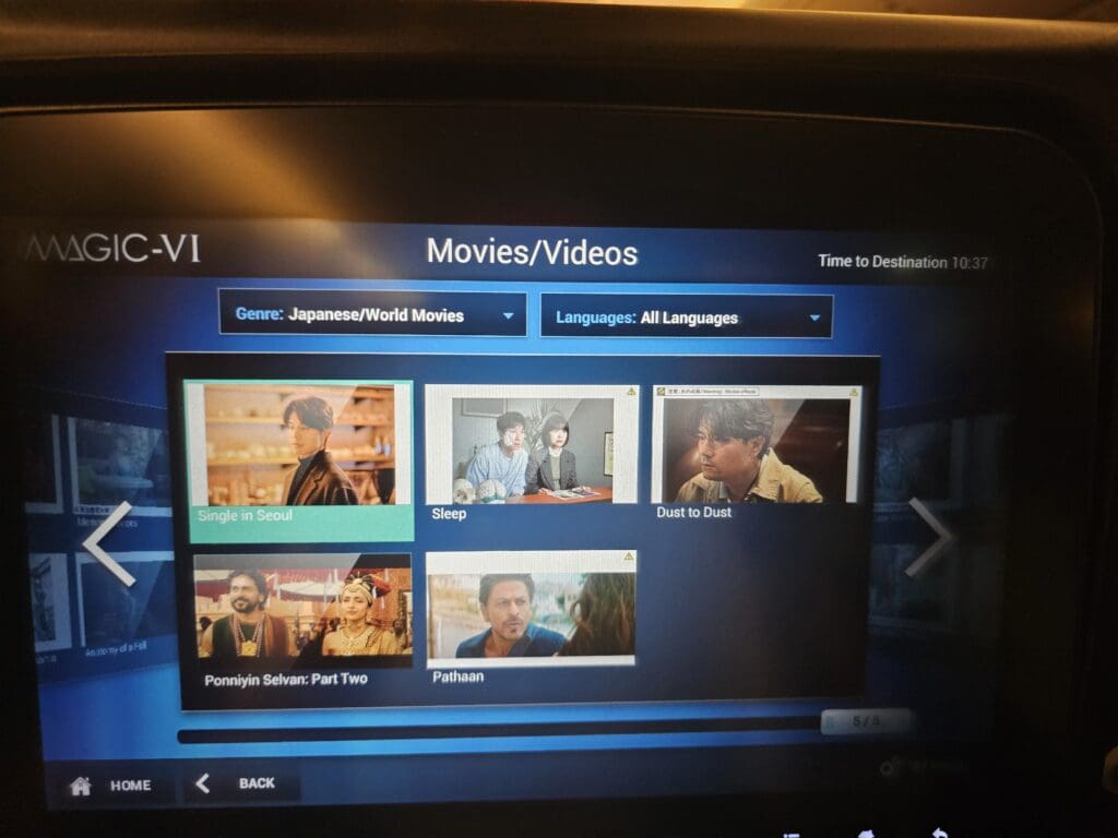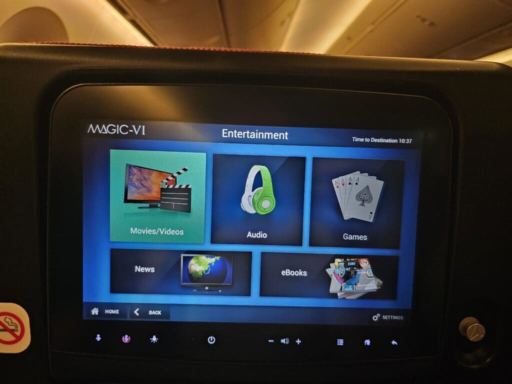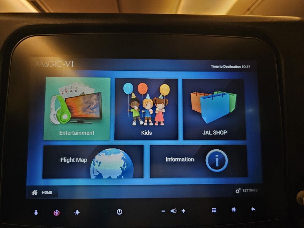 Seeing as I wasn’t quite ready for a nap, I decided to turn my attention to Japan Airlines’ MAGIC-VI system. Considering Japan Airlines’ reputation and my very good experience with the flight thus far, I had high expectations for the system. After turning my inflight entertainment screen back on, I selected English from the five language options. Other than Japanese and English, passengers could use the system in both Simplified and Traditional Chinese, as well as Korean. Whilst this language selection was a little better than some of the world’s other top airlines (ahem…Etihad Airways!), this was far from representative of the destinations that Japan Airlines sends its Dreamliners and other widebody jets to. Turning to the system’s layout, looking around, this was neither the most stylish nor modern system in the world and instead, seemed to be arranged in a practical, simple and easy-to-navigate layout. Upon reaching this page, passengers are presented with five options – Entertainment, Flight Map, Information, JAL Shop (although this was not working) and Kids. Crucially, the touchscreen function worked without issue and I found the system to be quick to load and transition between screens.