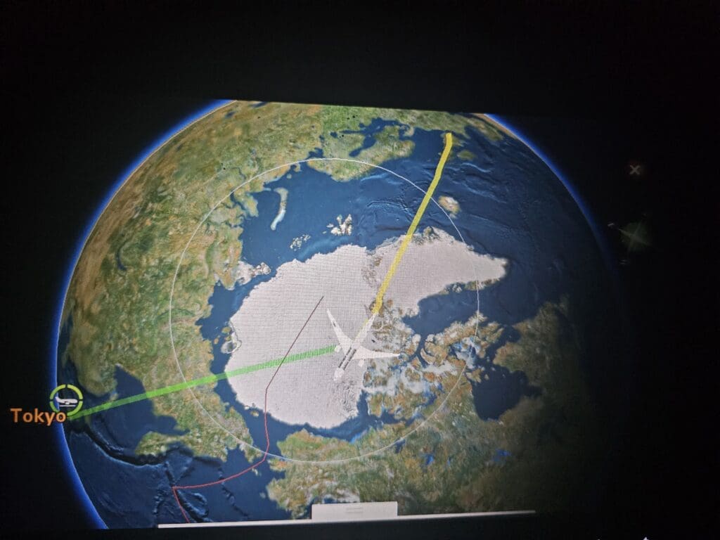 Despite the late start to boarding, this had been an efficient and quick affair, with the last passenger making it onto the aircraft no more than fourteen minutes after boarding had commenced. With all cargo having already been loaded, as the clock struck 0940, the L2 door was closed and the jetbridge was backed away from the aircraft. As soon as the cabin door was closed, the Purser commenced their long welcome announcement in Japanese and English, whilst the rest of the crew took to the aisles and performed a brief bow before returning to their duties. At that point, I noticed that the announcement system was both quiet and a little crackly. Unfortunately, once in the air, this became more evident and most announcements were inaudible. That morning, this announcement consisted of the usual welcomes, thanks and warnings, alongside a mention of our long 13:40 flight time. Like most airlines operating between Europe and East Asia, since March 2022, Japan Airlines has avoided Russian airspace and thus routes their services between London and Tokyo either northwards and over the Arctic, or eastwards through Central Asia. Much to my delight, the Purser announced that our flight would cross Greenland and Alaska before heading southwards to Japan. This meant that I would be in for my first experience of crossing the International Date Line!