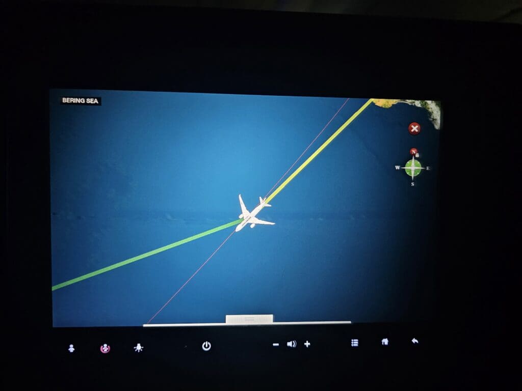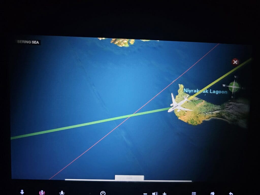 Around fifteen minutes after leaving the Alaskan mainland behind, the Dreamliner reached St Lawrence Island. Covering an area of 4,640 square kilometres, this is home to 1,475 residents (as per the 2020 census). This island is right at the fringes of the US and sits just under one hundred kilometres from Russia’s Chukchi Peninsula. Passing over the western portion of the island, we crossed this in no more than two minutes and continued making our way southwards over the sea. Highlighting the sheer expanse of Alaska, around two hours later the aircraft reached the Aleutian Islands chain, and slotted in between the Aleutian island of Attu, and the Diomede Islands. These serve as the famous border between Russia and the USA, with Big Diomede being a territory of the former and Little Diomede being a territory of the latter.