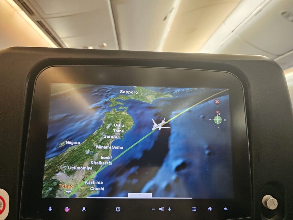 After steaming down the Kuril Islands for over an hour, the jet made its way down the eastern coastline of the Japanese island of Hokkaido at which point things became a little bumpy, although not turbulent enough to warrant the re-illumination of the seatbelt signs. Heading down Hokkaido’s coastline, the jet remained some distance offshore and I’m not too certain whether or not this was visible that morning from the right-hand side of the jet. At 0649, an announcement was made requesting passengers to fasten their seatbelts as the descent would be commencing a short time later and we would likely experience some turbulence throughout this. A short time later, the army of smartly dressed crew made their way through the cabin, ensuring everything was secure and in place for our arrival before strapping themselves in.