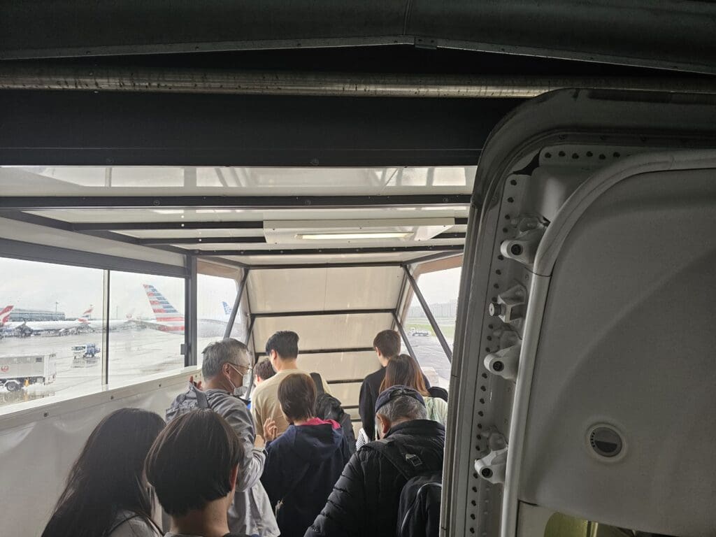 Having arrived during the morning rush, by that time, many of Terminal 3’s stands were filled and it soon became evident that we were bound for a remote stand. Five minutes after touching down, the Dreamliner came to a halt at Stand 151, arriving there a total of forty minutes behind schedule. Once at the stand, the engines spooled down and, perhaps desperate to escape after the long slog, many of my fellow passengers jumped up in an urgent rush to disembark. Once the engines had been spooled down, inside the cabin, calming piano music rang out and was accompanied by a video montage from across Japan, providing an appropriate end to our long slog.