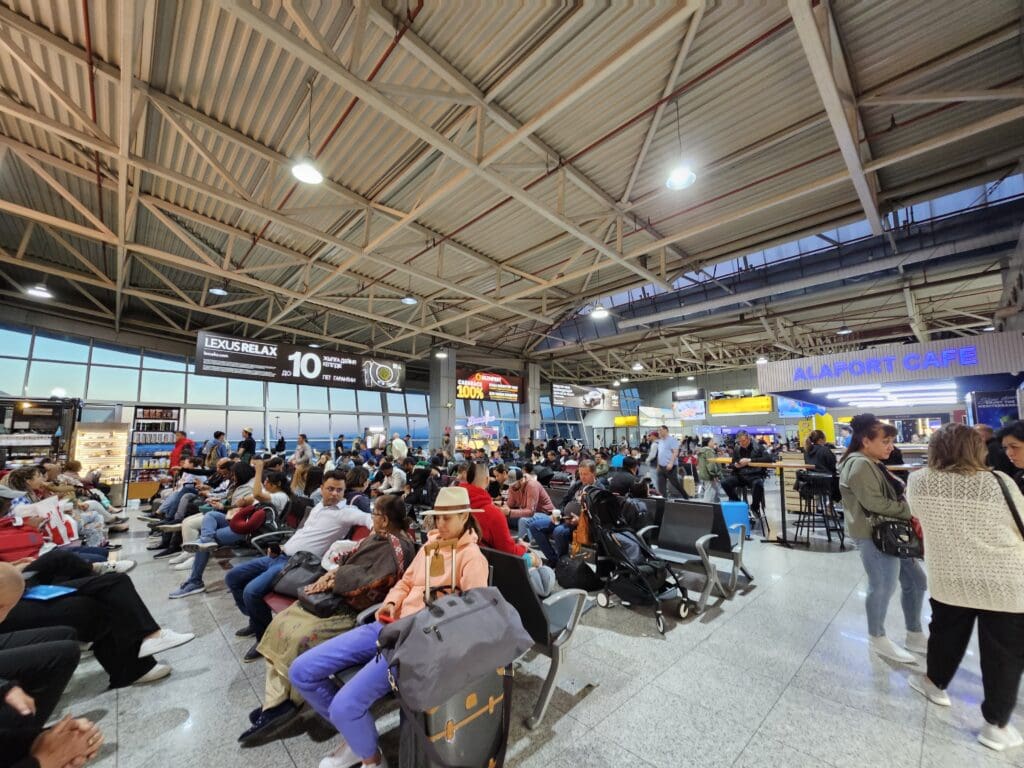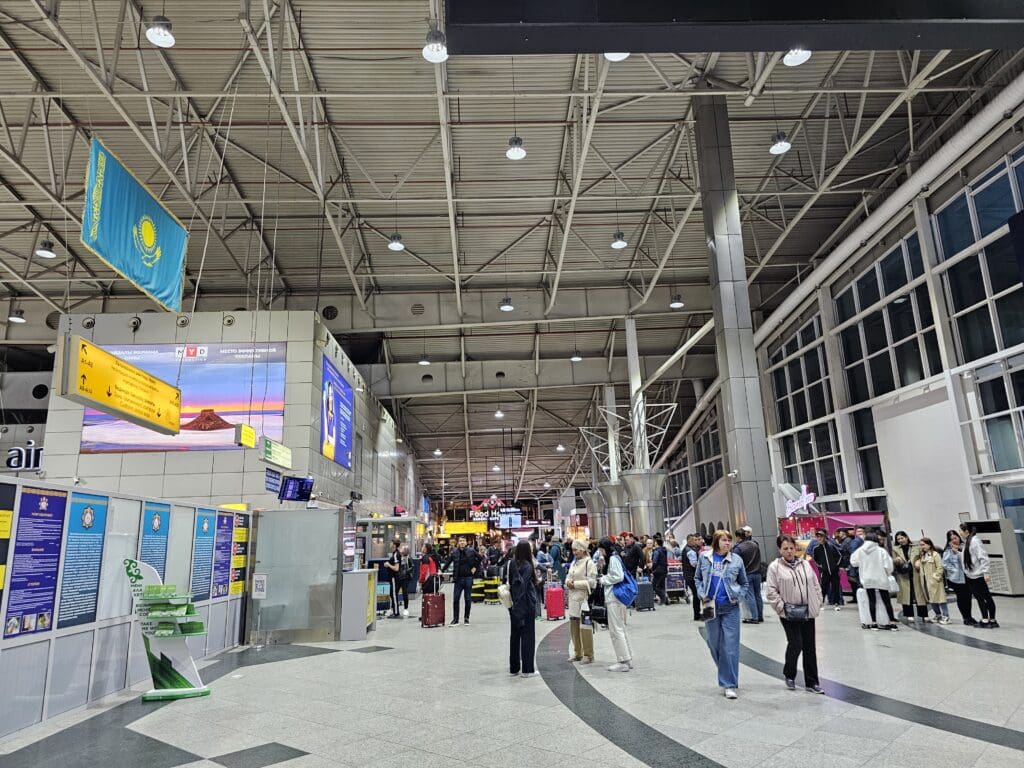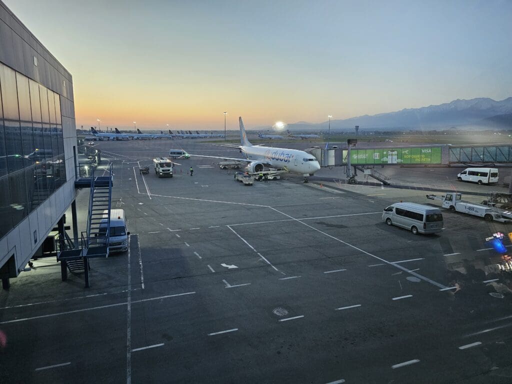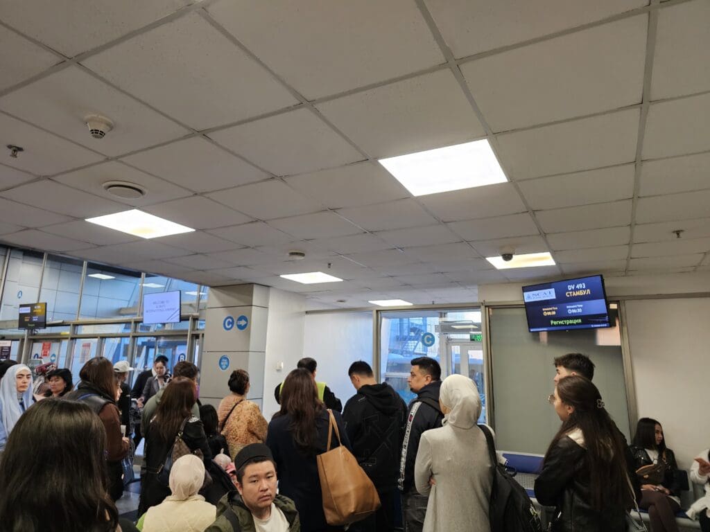 Hovering around, I watched as the skies slowly brightened and revealed rows and rows of aircraft outside as well as the picturesque snow-capped Tian Shan Mountains in the distance. That morning, there were to be a total of five international departures before SCAT Airlines’ Istanbul service. These took the form of flights to Antalya, Doha, Dubai and Sharjah, operated by Air Arabia, Air Astana, FlyDubai and Qatar Airways. Meanwhile, a Turkish Airlines Boeing 787-9 Dreamliner service to Istanbul would depart five minutes after the SCAT Airlines flight thus adding to the terminal’s crowdedness. Glancing around, it appeared that many passengers were very much getting in the holiday mood with many of those waiting seen swigging from beer cans to pass the time, reminiscent of Stansted Airport on a Saturday morning!