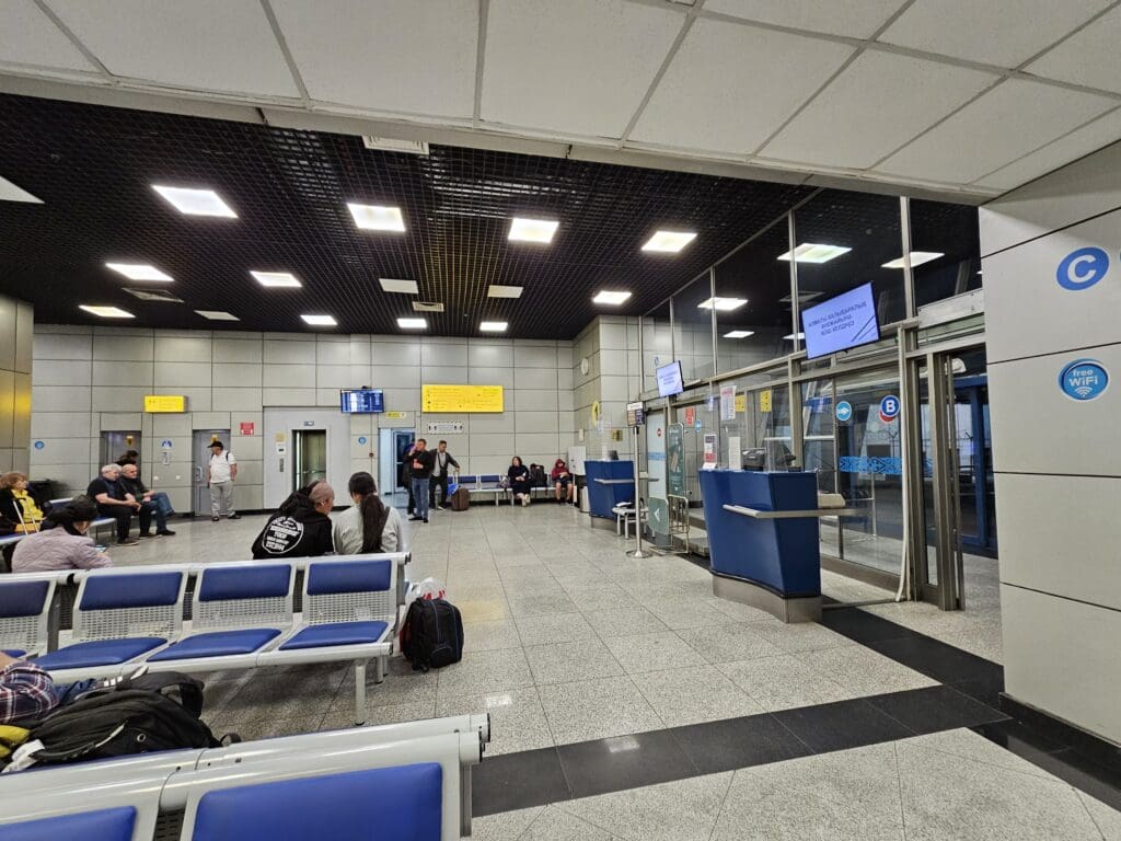 Thanks to the sheer number of passengers, the check-in hall was rather chaotic and I had expected somewhat of a wait at both immigration and security. However, with a line of immigration booths open, no more than two minutes of waiting was required before I headed up to one of these and handed over my passport and boarding pass. Manned by a stern-looking officer dressed in a quasi-military outfit topped with a large Soviet-style hat, I expected some tough questioning however instead they just gave me a few angry looks up and down, scanned my passport and stamped this before sliding this back to me. From there, I continued onwards to the small security checkpoint, where once again little waiting was required before I passed through this. Just before entering the main waiting area, two officials stopped me and asked me first in Russian and then in English how much cash I had on me – stopping me just as I got out my wallet to count (presumably fearful that others may think I was about to pay them a bribe), they allowed me to continue onwards on my journey.