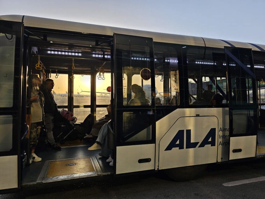 Considering that Almaty Airport is the busiest airport in Kazakhstan, the international portion of this is small, cramped and ultimately disappointing. Airside, this consists of a small rectangular hall with one café, two café-bars, an ice cream stall, a large duty-free shop and a souvenir store along three sides of this – whilst seats can be found in the middle. On one side, windows offer partially obstructed views out onto the apron and a smaller waiting area for the bus boarding gates can be found on the ground floor. Disappointingly, this was rather dirty with rubbish strewn about and the toilets were in poor condition. Meanwhile, very few plug sockets could be seen and no public wifi was offered either by the airport or by the various cafés in the waiting area. Based on my experience that morning, I would recommend that those heading off on international flights from Kazakhstan do so from Astana Airport’s nice and modern Terminal 1!
