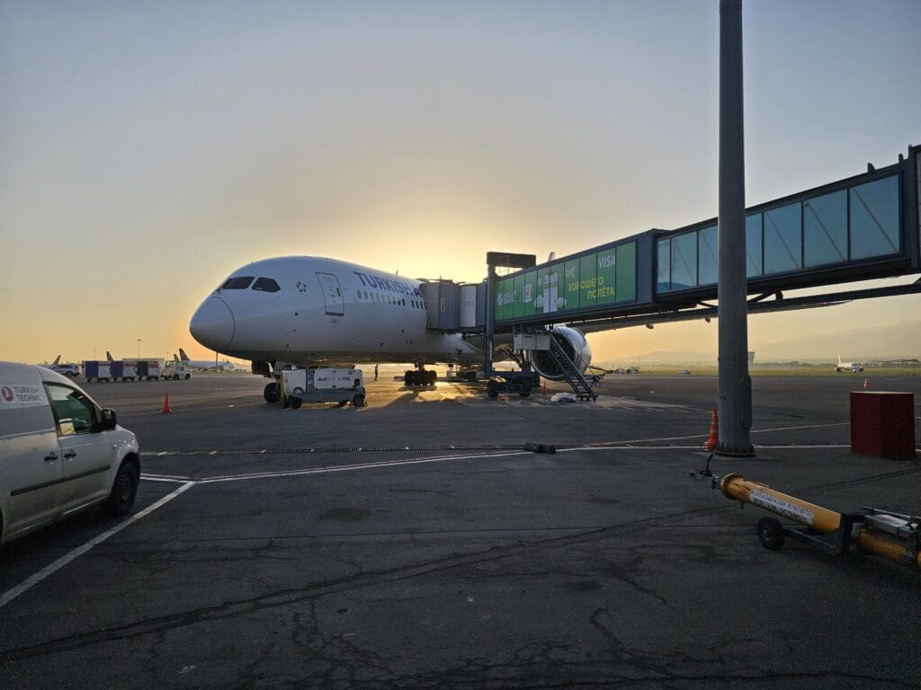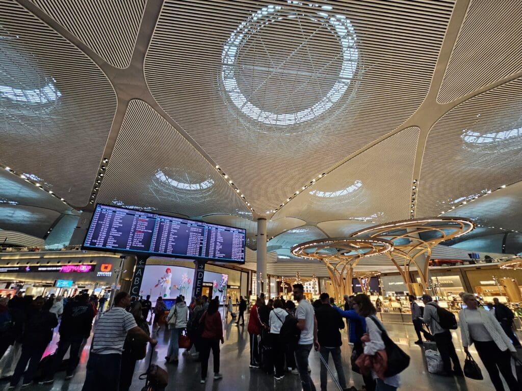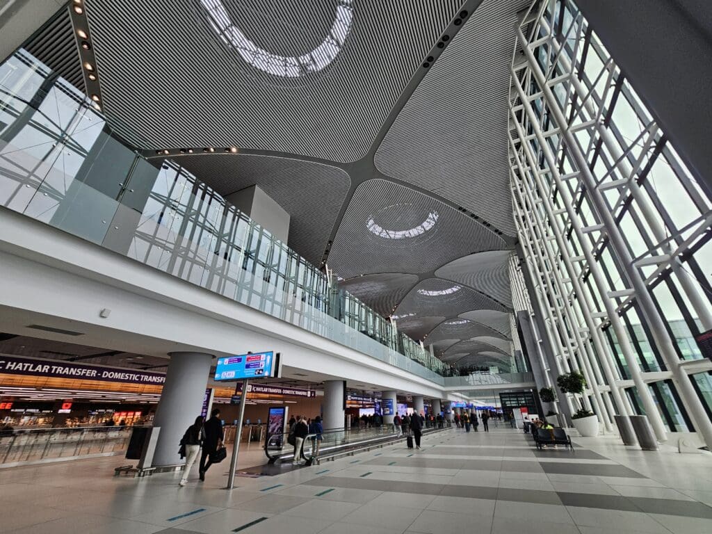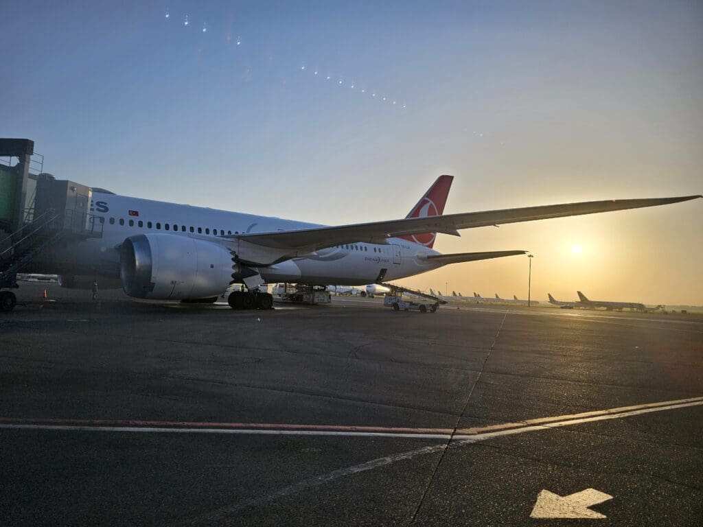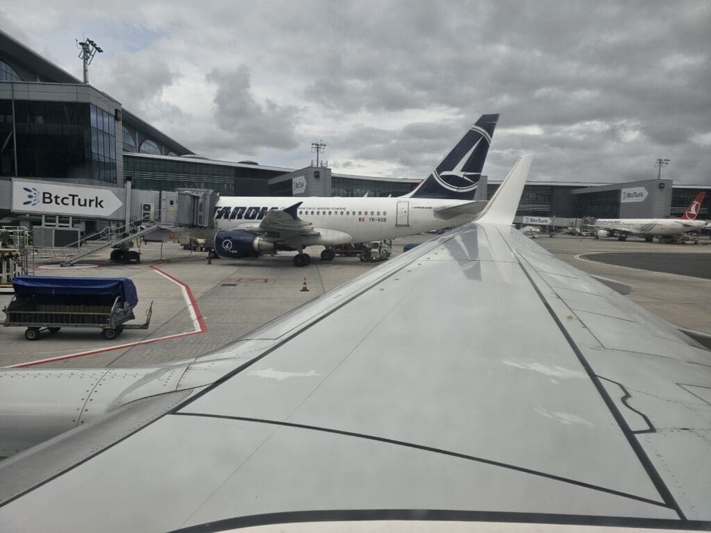 Having landed on what I believe to be the furthest runway from the terminal building, a fairly long taxi was in store. This initially took us past the airport’s cargo terminal before arriving at the near-endless rows of Turkish Airlines jets. During this stage of the journey, I caught sight of the Boeing 787-9 Dreamliner which we had left behind in Almaty, having beaten us to Istanbul as a result of flying higher and faster than our Boeing 737. Following a 17-minute taxi, the Boeing cautiously pulled into Stand E3 where it slotted in between a TAROM Airbus A318 and a SkyUp Airlines Boeing 737-800 operating on behalf of Moldovan carrier HiSky. Perhaps eager to disembark, as soon as the engines spooled down the cabin jumped up and a queue soon formed in the aisle. Fortunately for those in a rush to leave, the jetbridge was soon connected and the door was opened just two minutes after we came to a halt at which point disembarkation commenced. After thanking the crew, I headed up into Istanbul’s massive and modern terminal and commenced my transit.