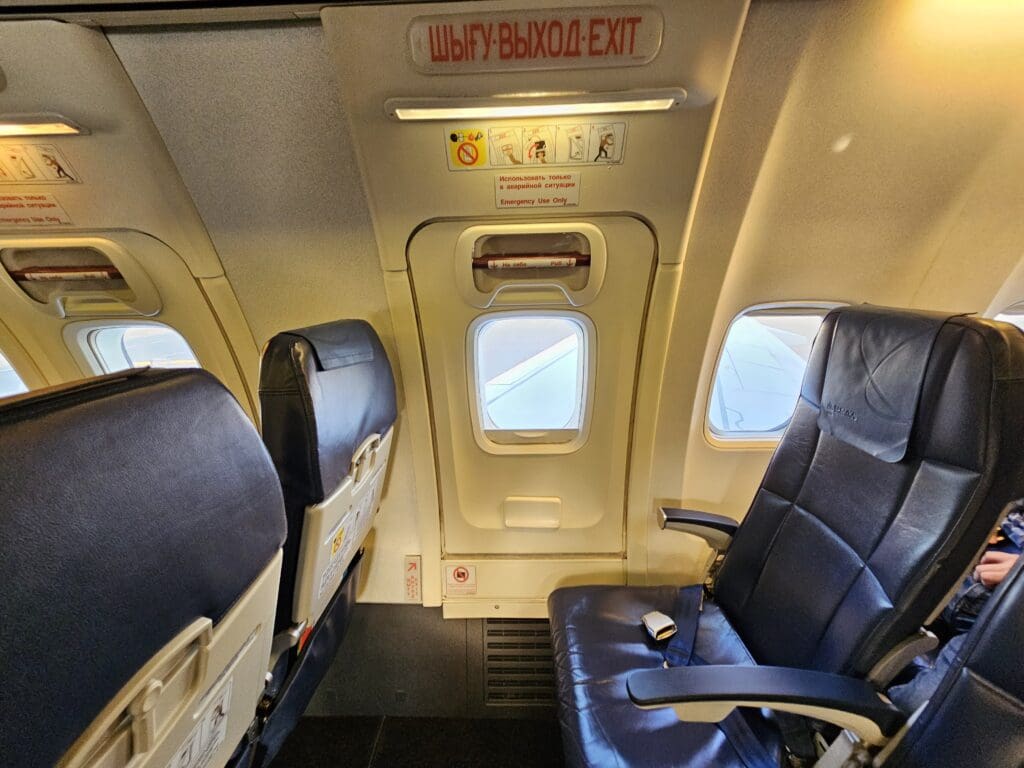 Despite the delayed start to boarding, it wasn’t long before the second and final bus arrived and at 0627 boarding was announced as complete. That morning, there seemed to be plenty of space onboard the Boeing and I would say that the flight was no more than 70% full. At 0630 on the dot, the cabin door was closed and the purser soon performed their trilingual welcome announcement in Kazakh, Russian and English. Along with the usual welcomes, thanks and warnings, during this, the flight time was announced as a long six hours. This soon transitioned into a manual safety demonstration which was performed as the Boeing’s two CFMI CFM56-7B26 engines spooled into life. In the usual manner, as soon as this was completed, the cabin crew came around ensuring that all was in place for our departure and spent much of this inspection requesting that passengers open their window blinds.