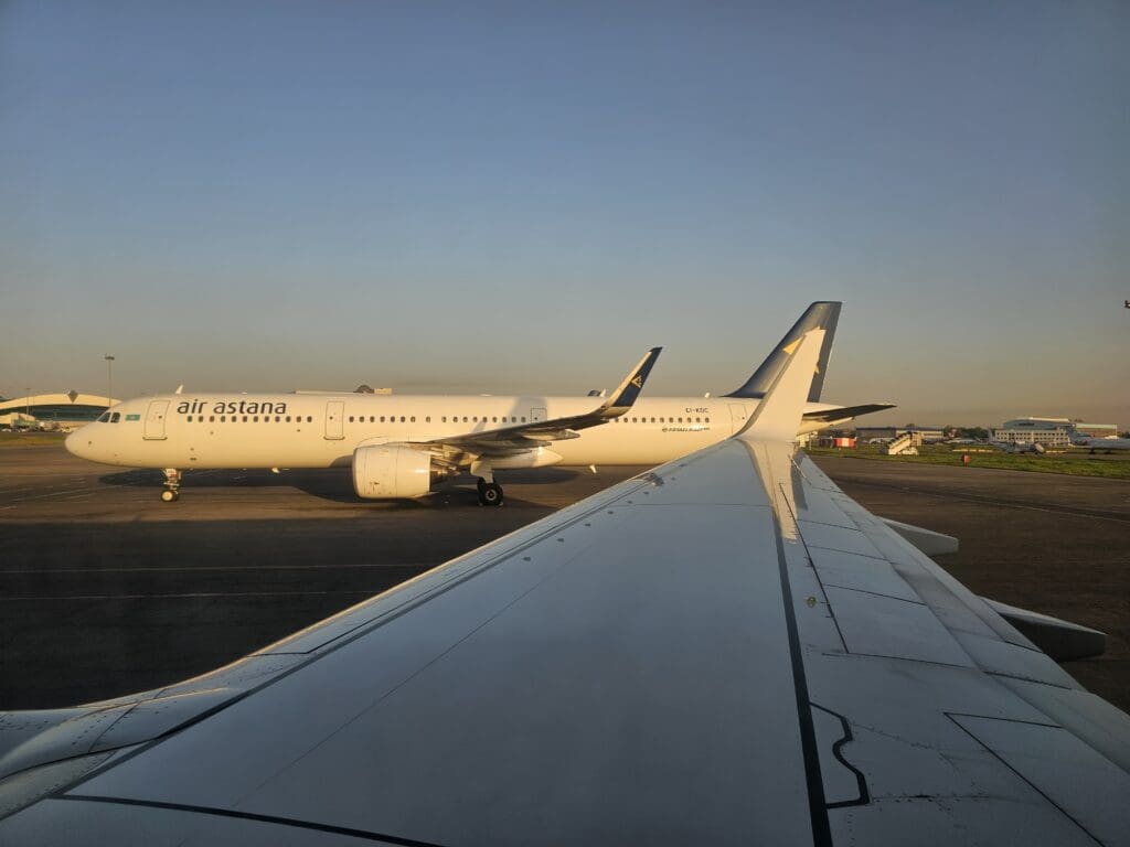 Once packed in like sardines, at 0614 the bus doors closed and we gently pulled away from the terminal. That morning our journey took us past the Turkish Dreamliner which we would race over to Istanbul, before we left the terminal behind and made a beeline for the cluster of Air Astana and SCAT Airlines jets. On the more interesting side of things, the bus also passed a registration-less Yakovlev Yak-42 once operated by International Jet Tour and an inconspicuous almost all-white wingletted CASA 295 operated by the National Security Committee. After passing this pair of interesting aircraft, the bus pulled up near the nose of the Boeing that would carry us all across to Turkey that morning.