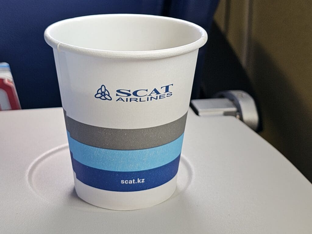 A short time later, a cart was rolled out to the front of the cabin and a soft drinks round was made for the few passengers that were awake at this time. Opting for water, this was passed over to me by one of the friendly crew members and I sipped this as I browsed through the only form of airline-provided entertainment onboard, the Aspan inflight magazine (aspan meaning sky in Kazakh). Examining this, Aspan proved to be a typical inflight magazine with several articles on SCAT Airlines’ destinations interspersed by plenty of advertisements as well as a section on the airline at the end. Perhaps unsurprisingly, given the demographic of the carrier’s passengers, all bar one short section, the appropriately named ‘Welcome to Kazakhstan’, was in Kazakh and Russian only. This English section highlighted the sights of Turkestan, Kazakh hospitality and several other things albeit with a fair number of grammatical and spelling errors.