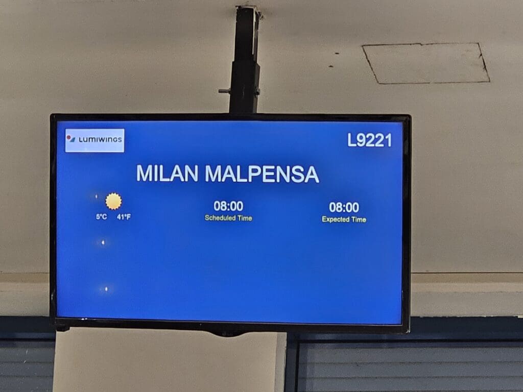At that time, the security checkpoint was yet to open so I took a seat in the landside area and waited. As time passed, my fellow Milan-bound passengers began to trickle in and at 0550 the cabin crew arrived, all wearing Lumiwings’ rather distinctive green uniforms, followed a short time later by two pilots and several other plain-clothed staff who were identified by their Lumiwings lanyards. As they wandered in, it became clear that the aircraft was to be staffed by a higher-than-normal crew complement, which I assume was due to familiarisation purposes.