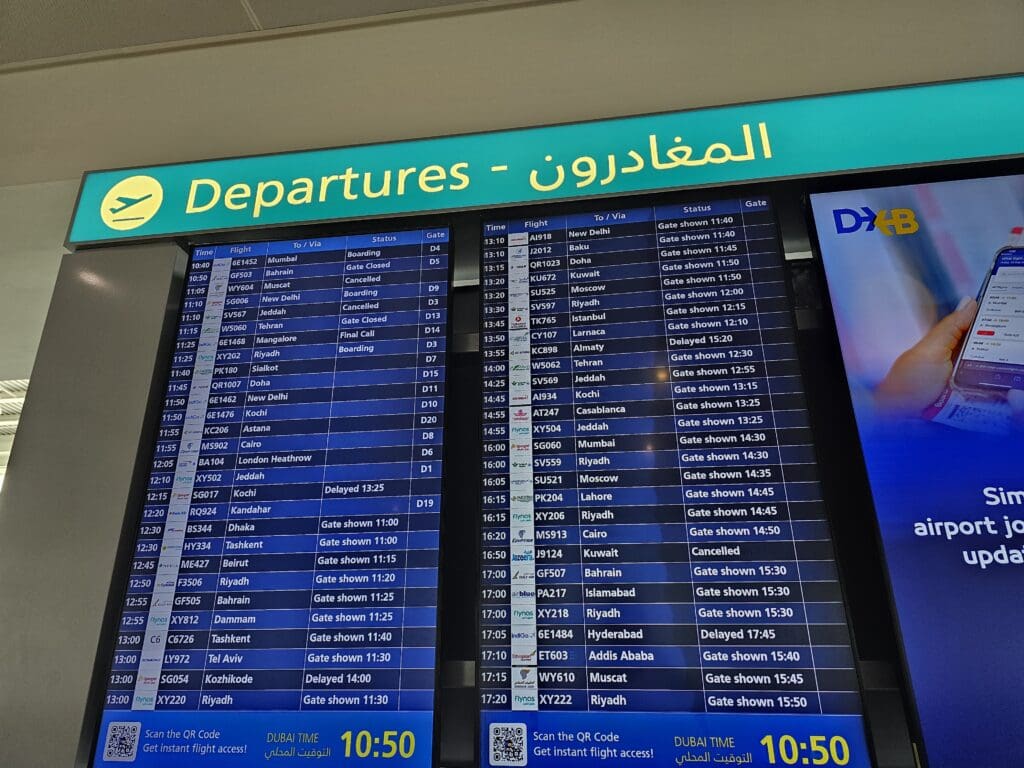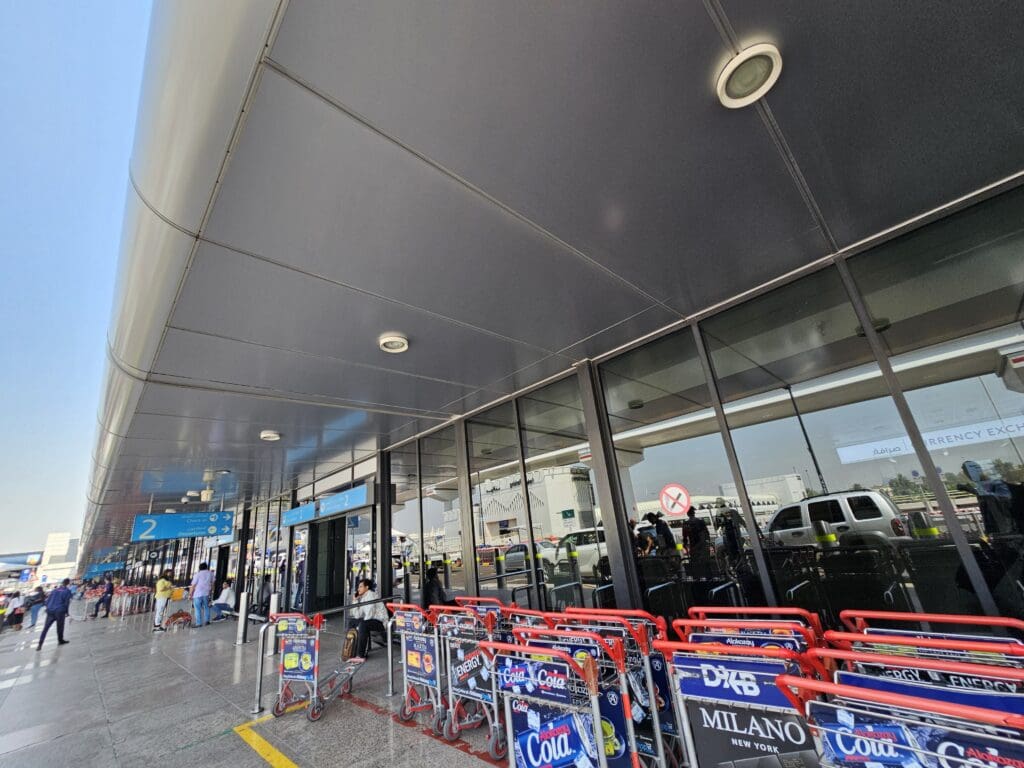 With my sister living about ten kilometres from the airport, reaching this is usually a quick, painless and relatively economical affair. However, with Sharjah not being particularly well connected to Dubai’s public transport network, this typically requires a short taxi ride. Fortunately, saving me a few bob that morning, I was able to hitch a lift in her partner’s battered and beaten-up but well-loved Jeep. Unfortunately, there aren’t many different routes you can take to get from Sharjah to Dubai International Airport’s Terminal 1, and doing so without traversing the Sheikh Zayed Road is nearly impossible. With this being the main artery running through Sharjah and Dubai and connecting both to the capital, Abu Dhabi, at times, this can be a traffic nightmare. Unfortunately, that morning, this was to be the case, and so we decided to leave with plenty of time, heading out onto the busy streets at 0900. As we had suspected, as soon as we hit the main road, we stumbled across a wall of traffic, and unable to weave in and out of this, we accepted our fate and spent a good hour crawling along at a snail’s pace. Eventually, we crossed the border from Sharjah to Dubai and passed the far western ends of the runways. Some entertainment was provided by a series of aircraft passing overhead every minute or so before we slowly made our way around the airport. Eventually, a good hour after leaving home, the welcome sight of Terminal 1’s facade appeared, bringing my journey to a close.